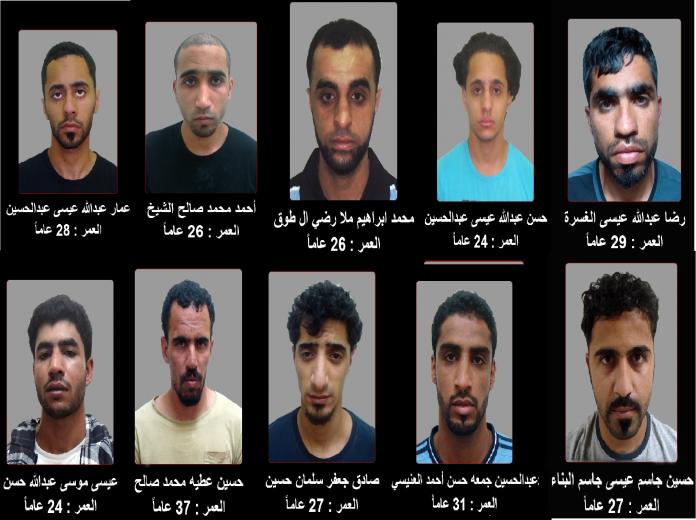 – أحمد محمد صالح محمد الشيخ “26 عاما” محكوم 73 سنة، عمار عبدالله عيسى عبدالحسين “28 عاما ” محكوم بالمؤبد بالإضافة إلى سنتين، محمد إبراهيم ملا رضي آل طوق”26 عاما ” محكوم 28 سنة، حسن عبدالله عيسى عبدالحسين “24 عاما” محكوم بالمؤبد، عيسى موسى عبدالله حسن “24 عاما”محكوم بالمؤبد، حسين عطية محمد صالح “37 عاما ” محكوم بالمؤبد، صادق جعفر سلمان حسين “27 عاما”محكوم بالمؤبد بالإضافة إلى 41 سنة، عبدالحسين جمعة حسن أحمد العنيسي “31 عاما” محكوم بالمؤبد، رضا عبدالله عيسى الغسرة “29 عاما” محكوم بالمؤبد بالإضافة إلى 79 سنة، وحسين جاسم عيسى جاسم البناء “27 عاما” محكوم 43 سنة.