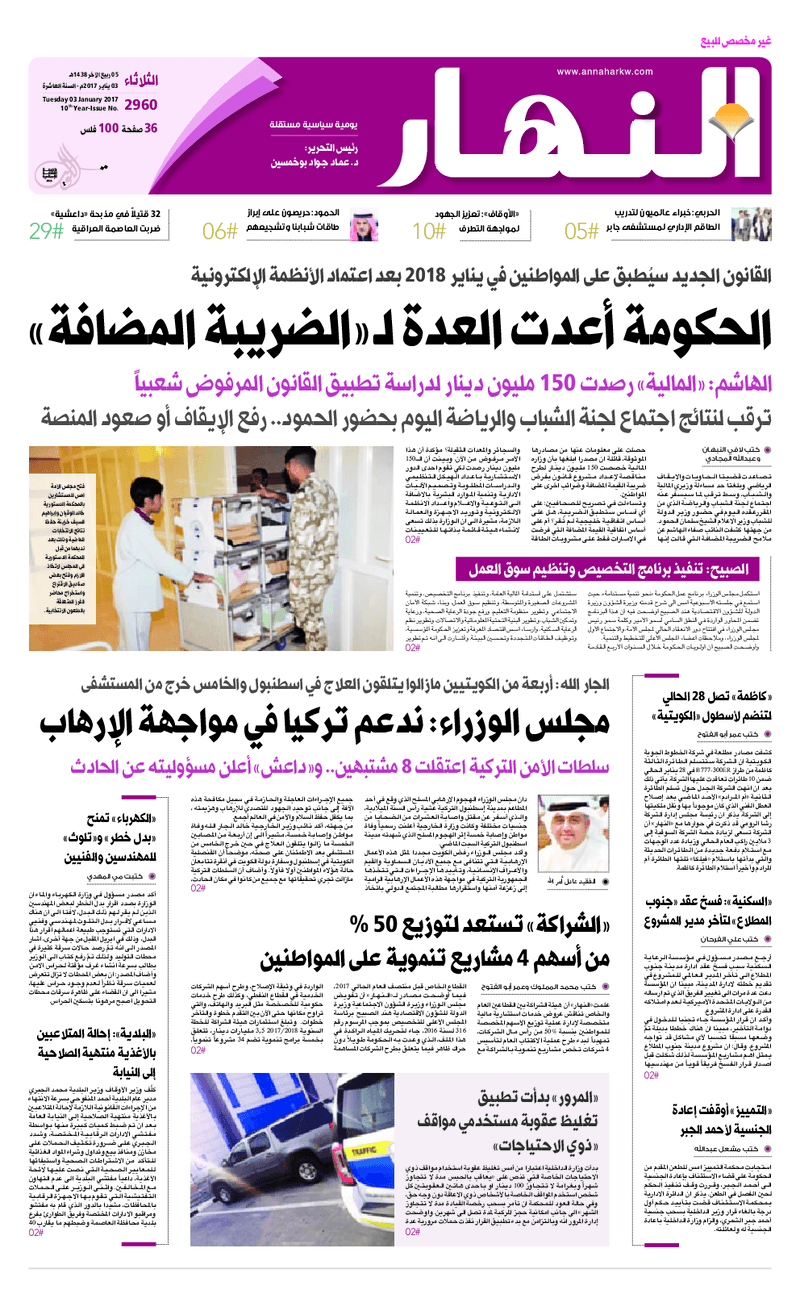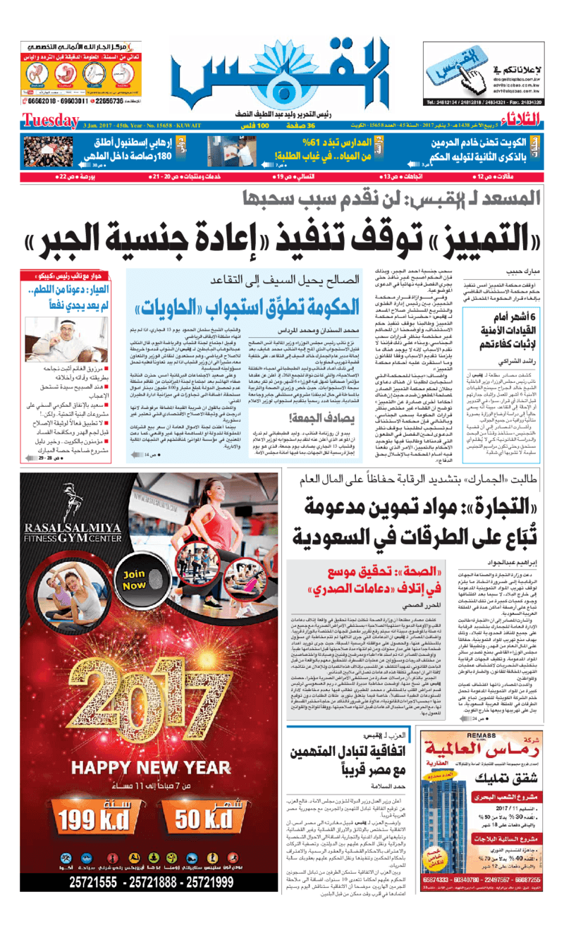 آخر الأخبار جرائم وقضايا “الجمارك” تضبط 29 ألف علبة مشروبات كحولية قادمة من دولة آسيوية في ميناء الشويخ 9 يونيو، 2024 محليات ممثلة عن دولة الكويت الطبيبة الكويتية أسماء الكندري تشارك في المؤتمر العالمي للمناظير في إيطاليا 8 يونيو، 2024 محليات “الصحة”: اكتمال وصول فريق الخدمات الطبية ببعثة الحج الكويتية لمكة المكرمة 8 يونيو، 2024 محليات “الصحة” تحدد 8 مراكز للصحة المدرسية لاستقبال الطلبة المبتعثين 8 يونيو، 2024 عربي وعالمي “الصحة العالمية”: تسجيل أول وفاة لشخص مصاب بـ«أنفلونزا الطيور» 7 يونيو، 2024 محليات عناوين الصحف الكويتية ليوم الثلاثاء 03 يناير 2017 محرر المحليات3 يناير، 2017أضف تعليق1 دقائق جريدة الجريدة جريدة الأنباء جريدة القبس جريدة السياسة جريدة الوطن جريدة الراي جريدة النهار الوسومTop عناوين الصحف المحلية من الممكن أن يعجبك جرائم وقضايا “الجمارك” تضبط 29 ألف علبة مشروبات كحولية قادمة من دولة آسيوية في ميناء الشويخ محليات ممثلة عن دولة الكويت الطبيبة الكويتية أسماء الكندري تشارك في المؤتمر العالمي للمناظير في إيطاليا محليات “الصحة”: اكتمال وصول فريق الخدمات الطبية ببعثة الحج الكويتية لمكة المكرمة محليات “الصحة” تحدد 8 مراكز للصحة المدرسية لاستقبال الطلبة المبتعثين عربي وعالمي “الصحة العالمية”: تسجيل أول وفاة لشخص مصاب بـ«أنفلونزا الطيور» تكنولوجيا رش السحب بملح البحر.. تجربة “ثورية” لتبريد كوكب الأرض أضف تعليق أضغط هنا لإضافة تعليق إلغاء الردالتعليقالاسم البريد الإلكتروني الموقع الإلكتروني Δ هذا الموقع يستخدم خدمة أكيسميت للتقليل من البريد المزعجة. اعرف المزيد عن كيفية التعامل مع بيانات التعليقات الخاصة بك processed.