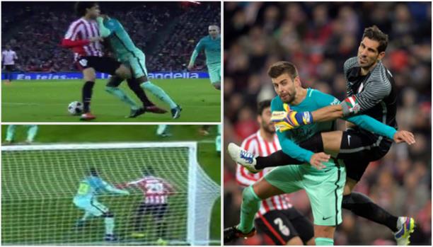 وكان بيكيه قد تعرّض لتدخل قاسٍ من حارس مرمى أتلتيك بلباو، عندما حول كرة برأسه نحو المرمى ليجتاحه الحارس بكل جسده من دون أن يصيب الكرة، لكن الحكم بوربالان لم يحتسب ركلة جزاء لبرشلونة واعتبر أن اللقطة عادية ولا تستحق.