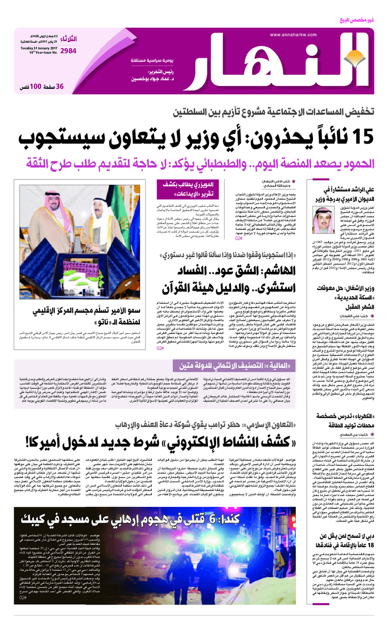 آخر الأخبار جرائم وقضايا “الجمارك” تضبط 29 ألف علبة مشروبات كحولية قادمة من دولة آسيوية في ميناء الشويخ 9 يونيو، 2024 محليات ممثلة عن دولة الكويت الطبيبة الكويتية أسماء الكندري تشارك في المؤتمر العالمي للمناظير في إيطاليا 8 يونيو، 2024 محليات “الصحة”: اكتمال وصول فريق الخدمات الطبية ببعثة الحج الكويتية لمكة المكرمة 8 يونيو، 2024 محليات “الصحة” تحدد 8 مراكز للصحة المدرسية لاستقبال الطلبة المبتعثين 8 يونيو، 2024 عربي وعالمي “الصحة العالمية”: تسجيل أول وفاة لشخص مصاب بـ«أنفلونزا الطيور» 7 يونيو، 2024 محليات عناوين الصحف الكويتية ليوم الثلاثاء 31 يناير 2017 محرر المحليات31 يناير، 2017أضف تعليق1 دقائق جريدة الجريدة جريدة الأنباء جريدة القبس جريدة السياسة جريدة الوطن جريدة الراي جريدة الوسط جريدة النهار الوسومTop عناوين الصحف المحلية من الممكن أن يعجبك جرائم وقضايا “الجمارك” تضبط 29 ألف علبة مشروبات كحولية قادمة من دولة آسيوية في ميناء الشويخ محليات ممثلة عن دولة الكويت الطبيبة الكويتية أسماء الكندري تشارك في المؤتمر العالمي للمناظير في إيطاليا محليات “الصحة”: اكتمال وصول فريق الخدمات الطبية ببعثة الحج الكويتية لمكة المكرمة محليات “الصحة” تحدد 8 مراكز للصحة المدرسية لاستقبال الطلبة المبتعثين عربي وعالمي “الصحة العالمية”: تسجيل أول وفاة لشخص مصاب بـ«أنفلونزا الطيور» تكنولوجيا رش السحب بملح البحر.. تجربة “ثورية” لتبريد كوكب الأرض أضف تعليق أضغط هنا لإضافة تعليق إلغاء الردالتعليقالاسم البريد الإلكتروني الموقع الإلكتروني Δ هذا الموقع يستخدم خدمة أكيسميت للتقليل من البريد المزعجة. اعرف المزيد عن كيفية التعامل مع بيانات التعليقات الخاصة بك processed.