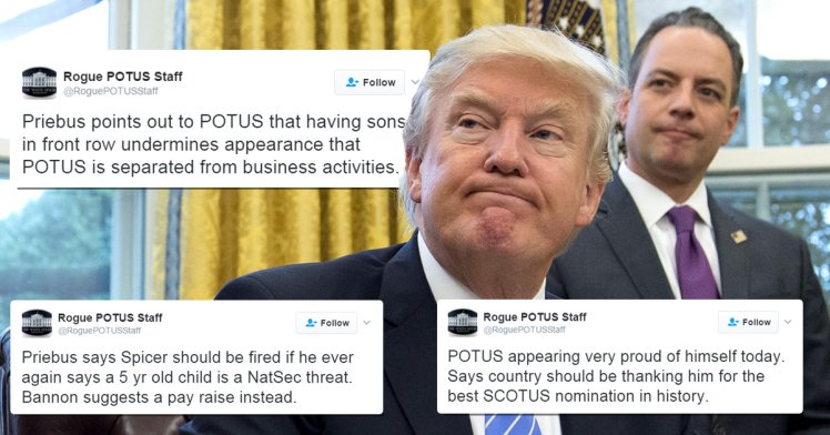 ويطلق أصحاب الحساب على أنفسهم اسم Rogue POTUS Staff أي أشرار أو أوغاد فريق رئيس الولايات المتحدة، ويعرفون أنفسهم على أنهم “فريق مقاومة غير رسمي داخل البيت الأبيض”.