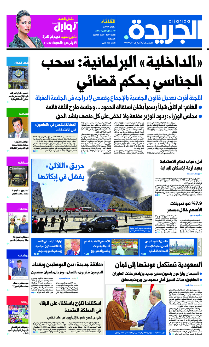آخر الأخبار جرائم وقضايا “الجمارك” تضبط 29 ألف علبة مشروبات كحولية قادمة من دولة آسيوية في ميناء الشويخ 9 يونيو، 2024 محليات ممثلة عن دولة الكويت الطبيبة الكويتية أسماء الكندري تشارك في المؤتمر العالمي للمناظير في إيطاليا 8 يونيو، 2024 محليات “الصحة”: اكتمال وصول فريق الخدمات الطبية ببعثة الحج الكويتية لمكة المكرمة 8 يونيو، 2024 محليات “الصحة” تحدد 8 مراكز للصحة المدرسية لاستقبال الطلبة المبتعثين 8 يونيو، 2024 عربي وعالمي “الصحة العالمية”: تسجيل أول وفاة لشخص مصاب بـ«أنفلونزا الطيور» 7 يونيو، 2024 محليات عناوين الصحف الكويتية ليوم الثلاثاء 07 فبراير 2017 محرر المحليات7 فبراير، 2017أضف تعليق1 دقائق جريدة الجريدة جريدة الأنباء جريدة القبس جريدة السياسة جريدة الوطن جريدة الراي جريدة الوسط جريدة النهار الوسومTop عناوين الصحف المحلية من الممكن أن يعجبك جرائم وقضايا “الجمارك” تضبط 29 ألف علبة مشروبات كحولية قادمة من دولة آسيوية في ميناء الشويخ محليات ممثلة عن دولة الكويت الطبيبة الكويتية أسماء الكندري تشارك في المؤتمر العالمي للمناظير في إيطاليا محليات “الصحة”: اكتمال وصول فريق الخدمات الطبية ببعثة الحج الكويتية لمكة المكرمة محليات “الصحة” تحدد 8 مراكز للصحة المدرسية لاستقبال الطلبة المبتعثين عربي وعالمي “الصحة العالمية”: تسجيل أول وفاة لشخص مصاب بـ«أنفلونزا الطيور» تكنولوجيا رش السحب بملح البحر.. تجربة “ثورية” لتبريد كوكب الأرض أضف تعليق أضغط هنا لإضافة تعليق إلغاء الردالتعليقالاسم البريد الإلكتروني الموقع الإلكتروني Δ هذا الموقع يستخدم خدمة أكيسميت للتقليل من البريد المزعجة. اعرف المزيد عن كيفية التعامل مع بيانات التعليقات الخاصة بك processed.