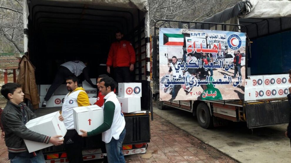 قدمت جمعية الهلال الاحمر الكويتي اليوم الاحد مساعدات إغاثية إلى 500 اسرة سورية نازحة في بلدة (شبعا) الحدودية جنوبي لبنان.