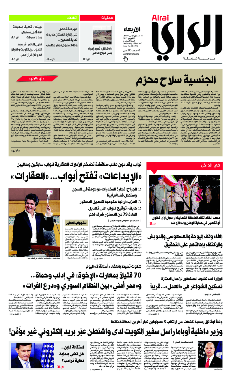 آخر الأخبار جرائم وقضايا “الجمارك” تضبط 29 ألف علبة مشروبات كحولية قادمة من دولة آسيوية في ميناء الشويخ 9 يونيو، 2024 محليات ممثلة عن دولة الكويت الطبيبة الكويتية أسماء الكندري تشارك في المؤتمر العالمي للمناظير في إيطاليا 8 يونيو، 2024 محليات “الصحة”: اكتمال وصول فريق الخدمات الطبية ببعثة الحج الكويتية لمكة المكرمة 8 يونيو، 2024 محليات “الصحة” تحدد 8 مراكز للصحة المدرسية لاستقبال الطلبة المبتعثين 8 يونيو، 2024 عربي وعالمي “الصحة العالمية”: تسجيل أول وفاة لشخص مصاب بـ«أنفلونزا الطيور» 7 يونيو، 2024 محليات عناوين الصحف الكويتية ليوم الأربعاء 15 فبراير 2017 محرر المحليات15 فبراير، 2017أضف تعليق1 دقائق جريدة الجريدة جريدة الأنباء جريدة القبس جريدة السياسة جريدة الوطن جريدة الراي جريدة الوسط جريدة النهار الوسومTop عناوين الصحف المحلية من الممكن أن يعجبك جرائم وقضايا “الجمارك” تضبط 29 ألف علبة مشروبات كحولية قادمة من دولة آسيوية في ميناء الشويخ محليات ممثلة عن دولة الكويت الطبيبة الكويتية أسماء الكندري تشارك في المؤتمر العالمي للمناظير في إيطاليا محليات “الصحة”: اكتمال وصول فريق الخدمات الطبية ببعثة الحج الكويتية لمكة المكرمة محليات “الصحة” تحدد 8 مراكز للصحة المدرسية لاستقبال الطلبة المبتعثين عربي وعالمي “الصحة العالمية”: تسجيل أول وفاة لشخص مصاب بـ«أنفلونزا الطيور» تكنولوجيا رش السحب بملح البحر.. تجربة “ثورية” لتبريد كوكب الأرض أضف تعليق أضغط هنا لإضافة تعليق إلغاء الردالتعليقالاسم البريد الإلكتروني الموقع الإلكتروني Δ هذا الموقع يستخدم خدمة أكيسميت للتقليل من البريد المزعجة. اعرف المزيد عن كيفية التعامل مع بيانات التعليقات الخاصة بك processed.