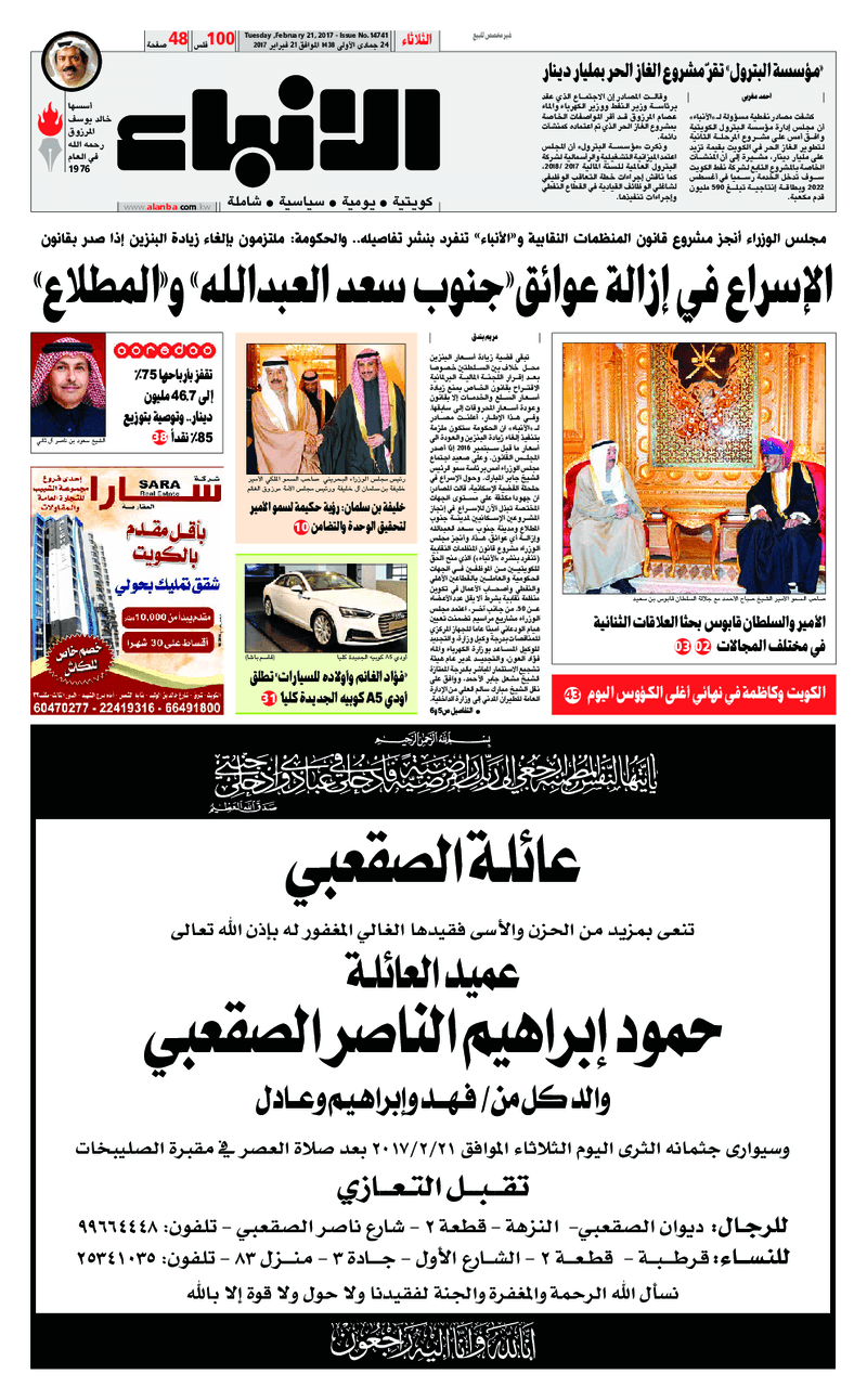 آخر الأخبار جرائم وقضايا “الجمارك” تضبط 29 ألف علبة مشروبات كحولية قادمة من دولة آسيوية في ميناء الشويخ 9 يونيو، 2024 محليات ممثلة عن دولة الكويت الطبيبة الكويتية أسماء الكندري تشارك في المؤتمر العالمي للمناظير في إيطاليا 8 يونيو، 2024 محليات “الصحة”: اكتمال وصول فريق الخدمات الطبية ببعثة الحج الكويتية لمكة المكرمة 8 يونيو، 2024 محليات “الصحة” تحدد 8 مراكز للصحة المدرسية لاستقبال الطلبة المبتعثين 8 يونيو، 2024 عربي وعالمي “الصحة العالمية”: تسجيل أول وفاة لشخص مصاب بـ«أنفلونزا الطيور» 7 يونيو، 2024 محليات عناوين الصحف الكويتية ليوم الثلاثاء 21 فبراير 2017 محرر المحليات21 فبراير، 2017أضف تعليق1 دقائق جريدة الجريدة جريدة الأنباء جريدة السياسة جريدة الوطن جريدة الراي جريدة الوسط جريدة النهار الوسومTop عناوين الصحف المحلية من الممكن أن يعجبك جرائم وقضايا “الجمارك” تضبط 29 ألف علبة مشروبات كحولية قادمة من دولة آسيوية في ميناء الشويخ محليات ممثلة عن دولة الكويت الطبيبة الكويتية أسماء الكندري تشارك في المؤتمر العالمي للمناظير في إيطاليا محليات “الصحة”: اكتمال وصول فريق الخدمات الطبية ببعثة الحج الكويتية لمكة المكرمة محليات “الصحة” تحدد 8 مراكز للصحة المدرسية لاستقبال الطلبة المبتعثين عربي وعالمي “الصحة العالمية”: تسجيل أول وفاة لشخص مصاب بـ«أنفلونزا الطيور» تكنولوجيا رش السحب بملح البحر.. تجربة “ثورية” لتبريد كوكب الأرض أضف تعليق أضغط هنا لإضافة تعليق إلغاء الردالتعليقالاسم البريد الإلكتروني الموقع الإلكتروني Δ هذا الموقع يستخدم خدمة أكيسميت للتقليل من البريد المزعجة. اعرف المزيد عن كيفية التعامل مع بيانات التعليقات الخاصة بك processed.