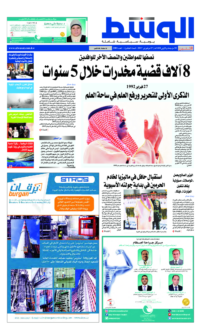 آخر الأخبار جرائم وقضايا “الجمارك” تضبط 29 ألف علبة مشروبات كحولية قادمة من دولة آسيوية في ميناء الشويخ 9 يونيو، 2024 محليات ممثلة عن دولة الكويت الطبيبة الكويتية أسماء الكندري تشارك في المؤتمر العالمي للمناظير في إيطاليا 8 يونيو، 2024 محليات “الصحة”: اكتمال وصول فريق الخدمات الطبية ببعثة الحج الكويتية لمكة المكرمة 8 يونيو، 2024 محليات “الصحة” تحدد 8 مراكز للصحة المدرسية لاستقبال الطلبة المبتعثين 8 يونيو، 2024 عربي وعالمي “الصحة العالمية”: تسجيل أول وفاة لشخص مصاب بـ«أنفلونزا الطيور» 7 يونيو، 2024 محليات عناوين الصحف الكويتية ليوم الاثنين 27 فبراير 2017 محرر المحليات27 فبراير، 2017أضف تعليق1 دقائق جريدة الجريدة جريدة الأنباء جريدة السياسة جريدة الوطن جريدة الراي جريدة الوسط جريدة النهار الوسومTop عناوين الصحف المحلية من الممكن أن يعجبك جرائم وقضايا “الجمارك” تضبط 29 ألف علبة مشروبات كحولية قادمة من دولة آسيوية في ميناء الشويخ محليات ممثلة عن دولة الكويت الطبيبة الكويتية أسماء الكندري تشارك في المؤتمر العالمي للمناظير في إيطاليا محليات “الصحة”: اكتمال وصول فريق الخدمات الطبية ببعثة الحج الكويتية لمكة المكرمة محليات “الصحة” تحدد 8 مراكز للصحة المدرسية لاستقبال الطلبة المبتعثين عربي وعالمي “الصحة العالمية”: تسجيل أول وفاة لشخص مصاب بـ«أنفلونزا الطيور» تكنولوجيا رش السحب بملح البحر.. تجربة “ثورية” لتبريد كوكب الأرض أضف تعليق أضغط هنا لإضافة تعليق إلغاء الردالتعليقالاسم البريد الإلكتروني الموقع الإلكتروني Δ هذا الموقع يستخدم خدمة أكيسميت للتقليل من البريد المزعجة. اعرف المزيد عن كيفية التعامل مع بيانات التعليقات الخاصة بك processed.