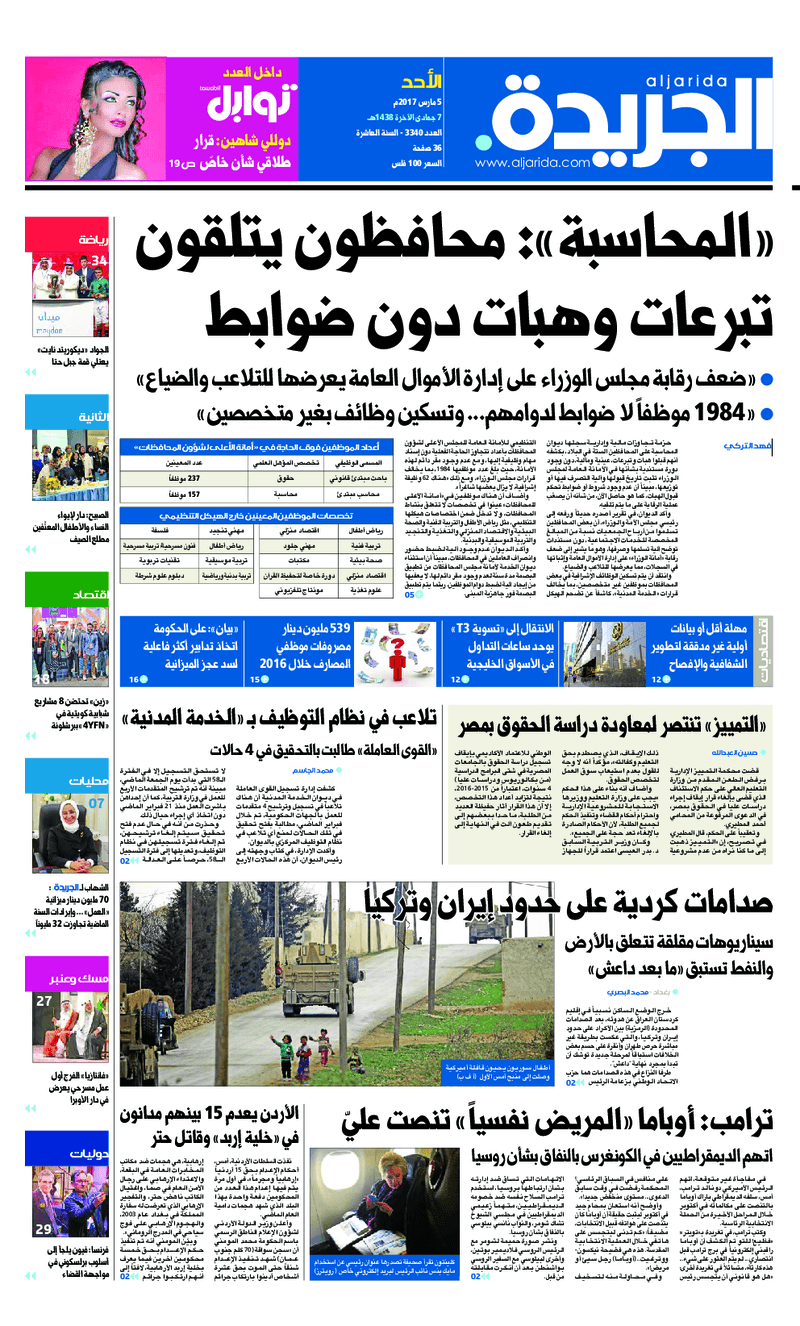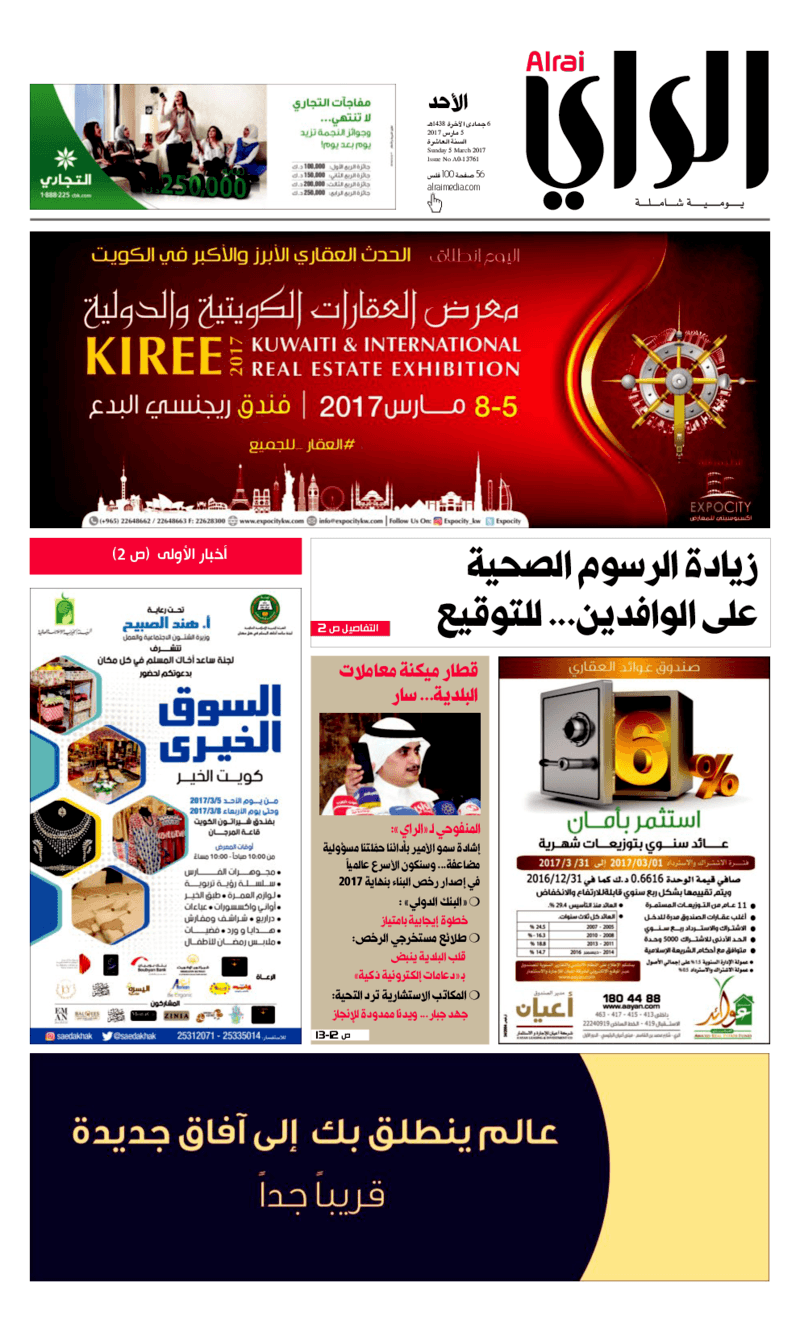 آخر الأخبار جرائم وقضايا “الجمارك” تضبط 29 ألف علبة مشروبات كحولية قادمة من دولة آسيوية في ميناء الشويخ 9 يونيو، 2024 محليات ممثلة عن دولة الكويت الطبيبة الكويتية أسماء الكندري تشارك في المؤتمر العالمي للمناظير في إيطاليا 8 يونيو، 2024 محليات “الصحة”: اكتمال وصول فريق الخدمات الطبية ببعثة الحج الكويتية لمكة المكرمة 8 يونيو، 2024 محليات “الصحة” تحدد 8 مراكز للصحة المدرسية لاستقبال الطلبة المبتعثين 8 يونيو، 2024 عربي وعالمي “الصحة العالمية”: تسجيل أول وفاة لشخص مصاب بـ«أنفلونزا الطيور» 7 يونيو، 2024 محليات عناوين الصحف الكويتية ليوم الأحد 05 مارس 2017 محرر المحليات5 مارس، 2017أضف تعليق1 دقائق جريدة الجريدة جريدة الأنباء جريدة السياسة جريدة الراي جريدة الوسط جريدة النهار الوسومTop عناوين الصحف المحلية من الممكن أن يعجبك جرائم وقضايا “الجمارك” تضبط 29 ألف علبة مشروبات كحولية قادمة من دولة آسيوية في ميناء الشويخ محليات ممثلة عن دولة الكويت الطبيبة الكويتية أسماء الكندري تشارك في المؤتمر العالمي للمناظير في إيطاليا محليات “الصحة”: اكتمال وصول فريق الخدمات الطبية ببعثة الحج الكويتية لمكة المكرمة محليات “الصحة” تحدد 8 مراكز للصحة المدرسية لاستقبال الطلبة المبتعثين عربي وعالمي “الصحة العالمية”: تسجيل أول وفاة لشخص مصاب بـ«أنفلونزا الطيور» تكنولوجيا رش السحب بملح البحر.. تجربة “ثورية” لتبريد كوكب الأرض أضف تعليق أضغط هنا لإضافة تعليق إلغاء الردالتعليقالاسم البريد الإلكتروني الموقع الإلكتروني Δ هذا الموقع يستخدم خدمة أكيسميت للتقليل من البريد المزعجة. اعرف المزيد عن كيفية التعامل مع بيانات التعليقات الخاصة بك processed.