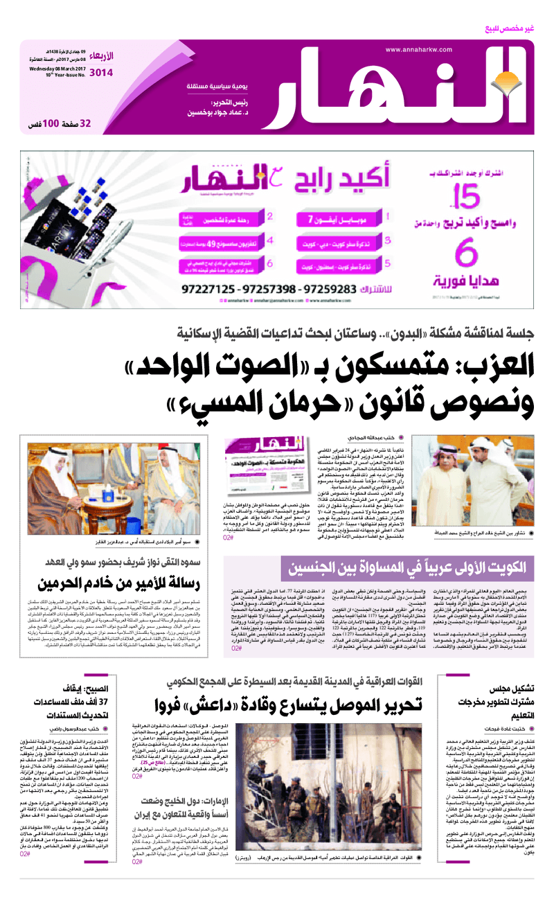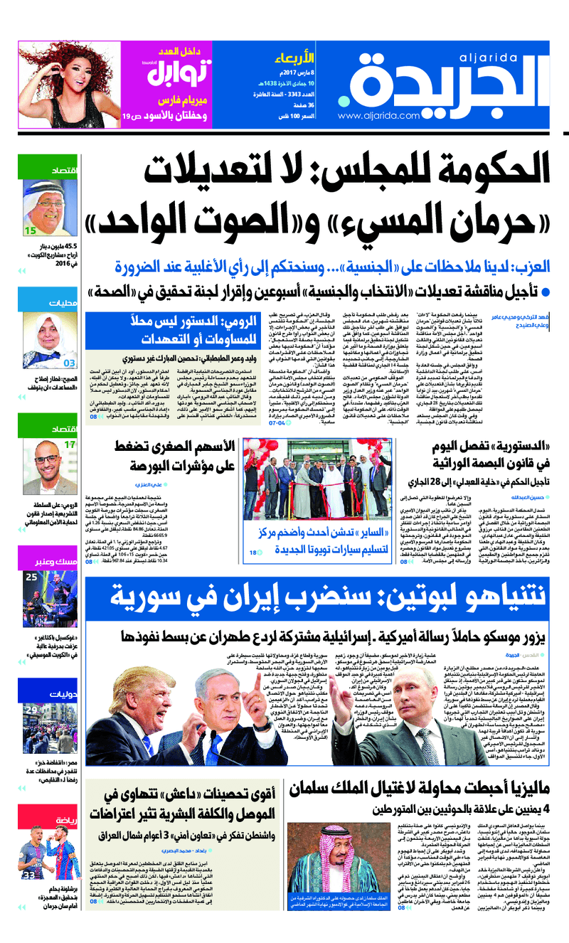 آخر الأخبار جرائم وقضايا “الجمارك” تضبط 29 ألف علبة مشروبات كحولية قادمة من دولة آسيوية في ميناء الشويخ 9 يونيو، 2024 محليات ممثلة عن دولة الكويت الطبيبة الكويتية أسماء الكندري تشارك في المؤتمر العالمي للمناظير في إيطاليا 8 يونيو، 2024 محليات “الصحة”: اكتمال وصول فريق الخدمات الطبية ببعثة الحج الكويتية لمكة المكرمة 8 يونيو، 2024 محليات “الصحة” تحدد 8 مراكز للصحة المدرسية لاستقبال الطلبة المبتعثين 8 يونيو، 2024 عربي وعالمي “الصحة العالمية”: تسجيل أول وفاة لشخص مصاب بـ«أنفلونزا الطيور» 7 يونيو، 2024 محليات عناوين الصحف الكويتية ليوم الأربعاء 08 مارس 2017 محرر المحليات8 مارس، 2017أضف تعليق1 دقائق جريدة الجريدة جريدة الأنباء جريدة السياسة جريدة الراي جريدة الوسط جريدة النهار الوسومTop عناوين الصحف المحلية من الممكن أن يعجبك جرائم وقضايا “الجمارك” تضبط 29 ألف علبة مشروبات كحولية قادمة من دولة آسيوية في ميناء الشويخ محليات ممثلة عن دولة الكويت الطبيبة الكويتية أسماء الكندري تشارك في المؤتمر العالمي للمناظير في إيطاليا محليات “الصحة”: اكتمال وصول فريق الخدمات الطبية ببعثة الحج الكويتية لمكة المكرمة محليات “الصحة” تحدد 8 مراكز للصحة المدرسية لاستقبال الطلبة المبتعثين عربي وعالمي “الصحة العالمية”: تسجيل أول وفاة لشخص مصاب بـ«أنفلونزا الطيور» تكنولوجيا رش السحب بملح البحر.. تجربة “ثورية” لتبريد كوكب الأرض أضف تعليق أضغط هنا لإضافة تعليق إلغاء الردالتعليقالاسم البريد الإلكتروني الموقع الإلكتروني Δ هذا الموقع يستخدم خدمة أكيسميت للتقليل من البريد المزعجة. اعرف المزيد عن كيفية التعامل مع بيانات التعليقات الخاصة بك processed.