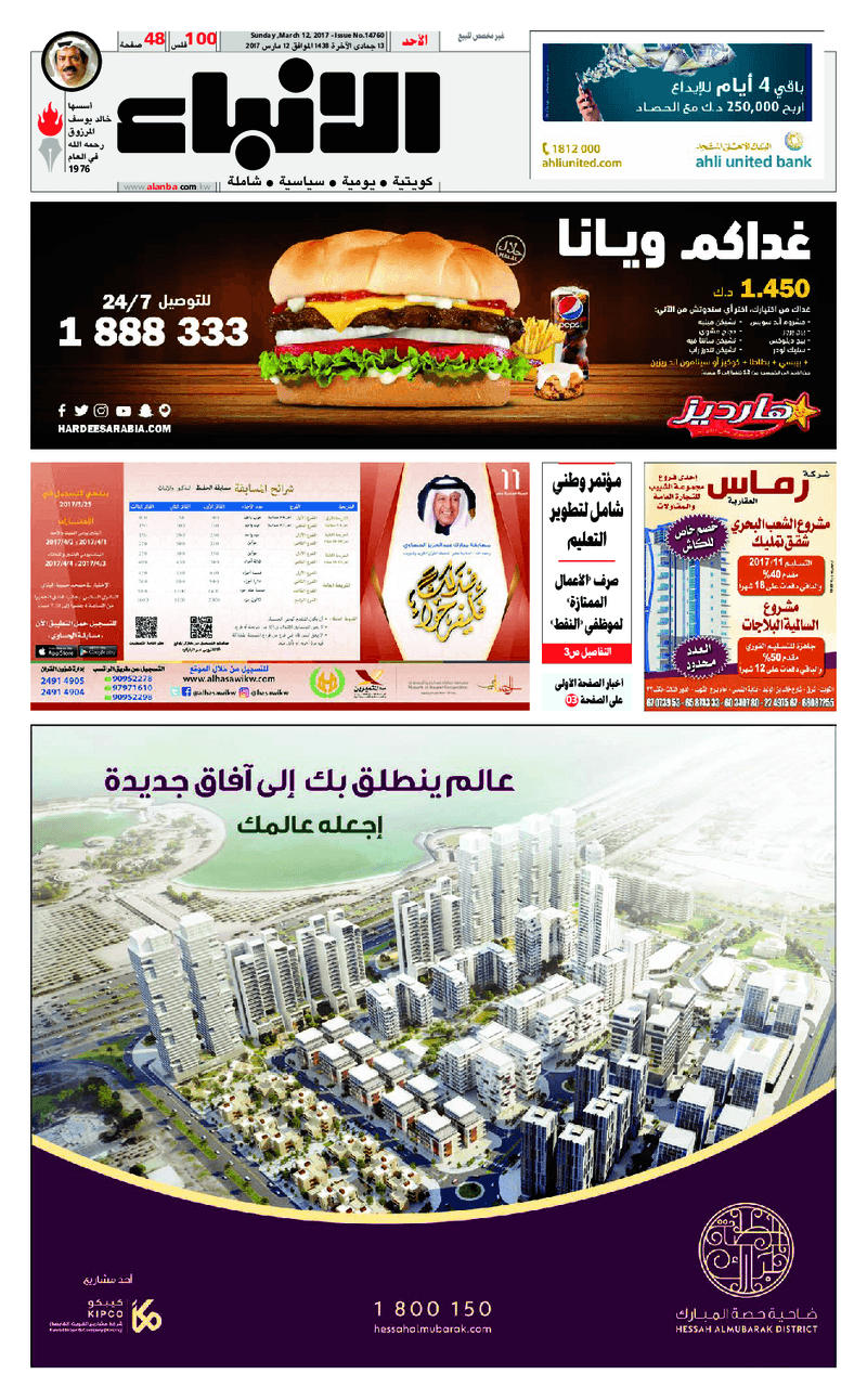 آخر الأخبار جرائم وقضايا “الجمارك” تضبط 29 ألف علبة مشروبات كحولية قادمة من دولة آسيوية في ميناء الشويخ 9 يونيو، 2024 محليات ممثلة عن دولة الكويت الطبيبة الكويتية أسماء الكندري تشارك في المؤتمر العالمي للمناظير في إيطاليا 8 يونيو، 2024 محليات “الصحة”: اكتمال وصول فريق الخدمات الطبية ببعثة الحج الكويتية لمكة المكرمة 8 يونيو، 2024 محليات “الصحة” تحدد 8 مراكز للصحة المدرسية لاستقبال الطلبة المبتعثين 8 يونيو، 2024 عربي وعالمي “الصحة العالمية”: تسجيل أول وفاة لشخص مصاب بـ«أنفلونزا الطيور» 7 يونيو، 2024 محليات عناوين الصحف الكويتية ليوم الأحد 12 مارس 2017 محرر المحليات12 مارس، 2017أضف تعليق1 دقائق جريدة الجريدة جريدة الأنباء جريدة السياسة جريدة الراي جريدة الوسط جريدة النهار الوسومTop عناوين الصحف المحلية من الممكن أن يعجبك جرائم وقضايا “الجمارك” تضبط 29 ألف علبة مشروبات كحولية قادمة من دولة آسيوية في ميناء الشويخ محليات ممثلة عن دولة الكويت الطبيبة الكويتية أسماء الكندري تشارك في المؤتمر العالمي للمناظير في إيطاليا محليات “الصحة”: اكتمال وصول فريق الخدمات الطبية ببعثة الحج الكويتية لمكة المكرمة محليات “الصحة” تحدد 8 مراكز للصحة المدرسية لاستقبال الطلبة المبتعثين عربي وعالمي “الصحة العالمية”: تسجيل أول وفاة لشخص مصاب بـ«أنفلونزا الطيور» تكنولوجيا رش السحب بملح البحر.. تجربة “ثورية” لتبريد كوكب الأرض أضف تعليق أضغط هنا لإضافة تعليق إلغاء الردالتعليقالاسم البريد الإلكتروني الموقع الإلكتروني Δ هذا الموقع يستخدم خدمة أكيسميت للتقليل من البريد المزعجة. اعرف المزيد عن كيفية التعامل مع بيانات التعليقات الخاصة بك processed.