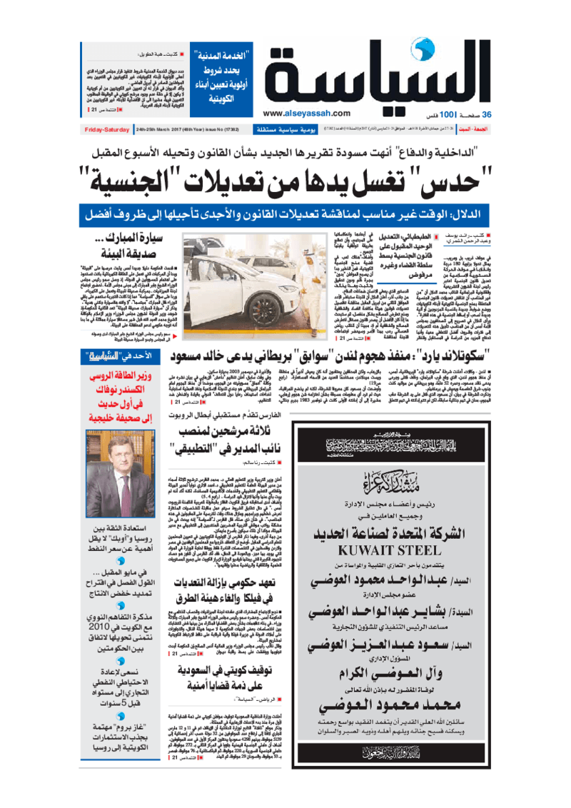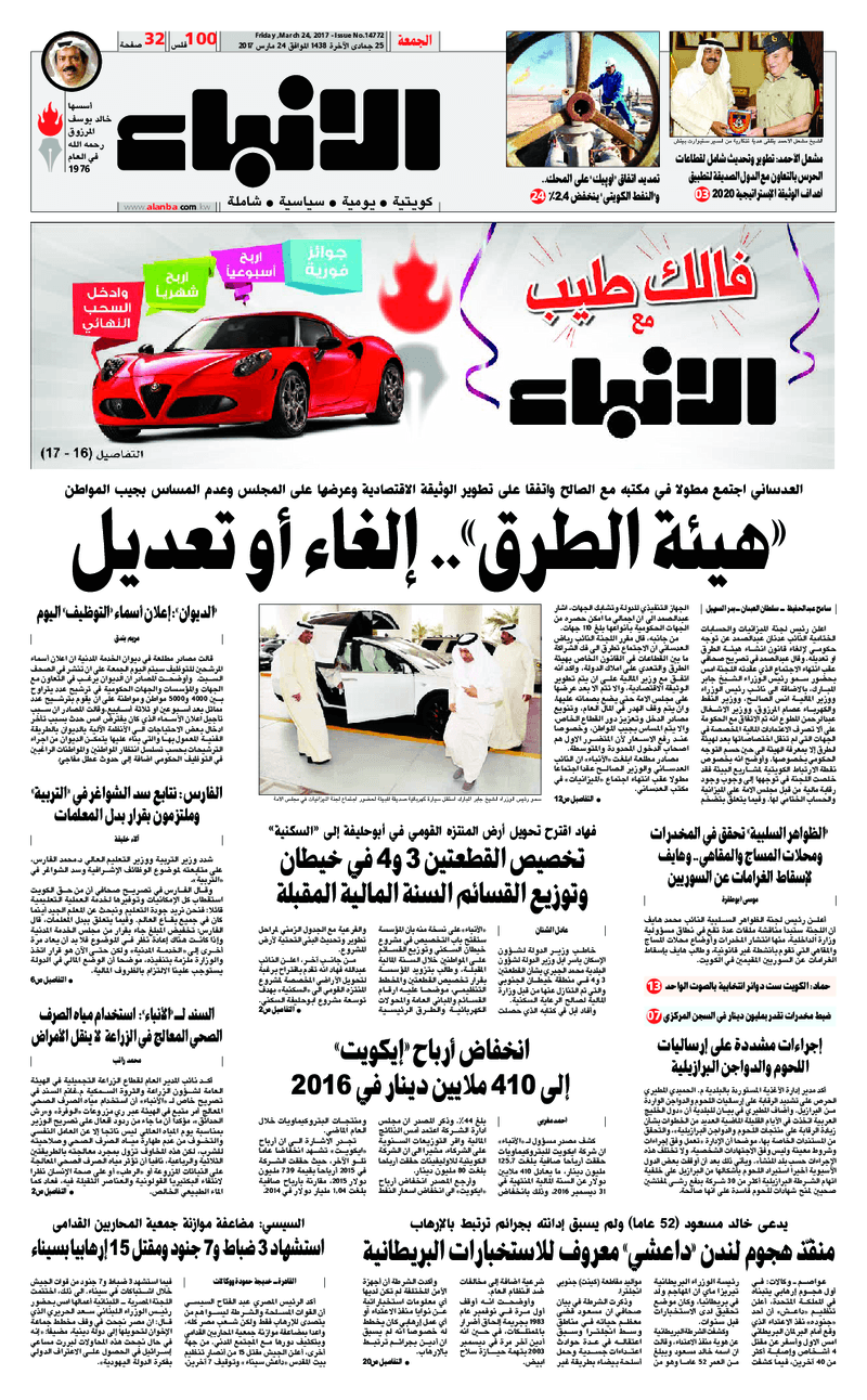 آخر الأخبار جرائم وقضايا “الجمارك” تضبط 29 ألف علبة مشروبات كحولية قادمة من دولة آسيوية في ميناء الشويخ 9 يونيو، 2024 محليات ممثلة عن دولة الكويت الطبيبة الكويتية أسماء الكندري تشارك في المؤتمر العالمي للمناظير في إيطاليا 8 يونيو، 2024 محليات “الصحة”: اكتمال وصول فريق الخدمات الطبية ببعثة الحج الكويتية لمكة المكرمة 8 يونيو، 2024 محليات “الصحة” تحدد 8 مراكز للصحة المدرسية لاستقبال الطلبة المبتعثين 8 يونيو، 2024 عربي وعالمي “الصحة العالمية”: تسجيل أول وفاة لشخص مصاب بـ«أنفلونزا الطيور» 7 يونيو، 2024 محليات عناوين الصحف الكويتية ليوم الجمعة 24 مارس 2017 محرر المحليات24 مارس، 2017أضف تعليق1 دقائق جريدة الجريدة جريدة الأنباء جريدة السياسة جريدة الوطن جريدة الراي جريدة النهار الوسومTop عناوين الصحف المحلية من الممكن أن يعجبك جرائم وقضايا “الجمارك” تضبط 29 ألف علبة مشروبات كحولية قادمة من دولة آسيوية في ميناء الشويخ محليات ممثلة عن دولة الكويت الطبيبة الكويتية أسماء الكندري تشارك في المؤتمر العالمي للمناظير في إيطاليا محليات “الصحة”: اكتمال وصول فريق الخدمات الطبية ببعثة الحج الكويتية لمكة المكرمة محليات “الصحة” تحدد 8 مراكز للصحة المدرسية لاستقبال الطلبة المبتعثين عربي وعالمي “الصحة العالمية”: تسجيل أول وفاة لشخص مصاب بـ«أنفلونزا الطيور» تكنولوجيا رش السحب بملح البحر.. تجربة “ثورية” لتبريد كوكب الأرض أضف تعليق أضغط هنا لإضافة تعليق إلغاء الردالتعليقالاسم البريد الإلكتروني الموقع الإلكتروني Δ هذا الموقع يستخدم خدمة أكيسميت للتقليل من البريد المزعجة. اعرف المزيد عن كيفية التعامل مع بيانات التعليقات الخاصة بك processed.