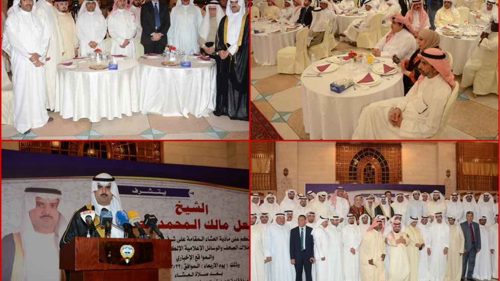 ومن جهته عبر رئيس إتحاد الاعلام الالكتروني فيصل خليفة الصواغ عن بالغ شكره للشيخ مشعل المحمد علي هذه الدعوة الكريمة ، موضحاً ان الاعلام الالكتروني كان ومازال هو الدرع الواقي لهذا الوطن من انتشار الافكار السامة والمغلوطة بين أبنائه.