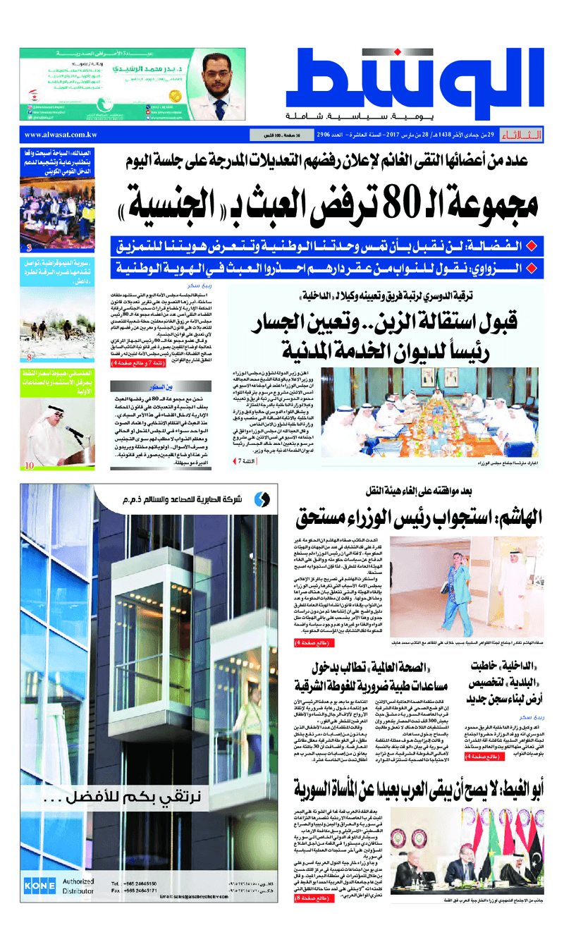 آخر الأخبار جرائم وقضايا “الجمارك” تضبط 29 ألف علبة مشروبات كحولية قادمة من دولة آسيوية في ميناء الشويخ 9 يونيو، 2024 محليات ممثلة عن دولة الكويت الطبيبة الكويتية أسماء الكندري تشارك في المؤتمر العالمي للمناظير في إيطاليا 8 يونيو، 2024 محليات “الصحة”: اكتمال وصول فريق الخدمات الطبية ببعثة الحج الكويتية لمكة المكرمة 8 يونيو، 2024 محليات “الصحة” تحدد 8 مراكز للصحة المدرسية لاستقبال الطلبة المبتعثين 8 يونيو، 2024 عربي وعالمي “الصحة العالمية”: تسجيل أول وفاة لشخص مصاب بـ«أنفلونزا الطيور» 7 يونيو، 2024 محليات عناوين الصحف الكويتية ليوم الثلاثاء 28 مارس 2017 محرر المحليات28 مارس، 2017أضف تعليق1 دقائق جريدة الجريدة جريدة الأنباء جريدة السياسة جريدة الوطن جريدة الراي جريدة الوسط جريدة النهار الوسومTop عناوين الصحف المحلية من الممكن أن يعجبك جرائم وقضايا “الجمارك” تضبط 29 ألف علبة مشروبات كحولية قادمة من دولة آسيوية في ميناء الشويخ محليات ممثلة عن دولة الكويت الطبيبة الكويتية أسماء الكندري تشارك في المؤتمر العالمي للمناظير في إيطاليا محليات “الصحة”: اكتمال وصول فريق الخدمات الطبية ببعثة الحج الكويتية لمكة المكرمة محليات “الصحة” تحدد 8 مراكز للصحة المدرسية لاستقبال الطلبة المبتعثين عربي وعالمي “الصحة العالمية”: تسجيل أول وفاة لشخص مصاب بـ«أنفلونزا الطيور» تكنولوجيا رش السحب بملح البحر.. تجربة “ثورية” لتبريد كوكب الأرض أضف تعليق أضغط هنا لإضافة تعليق إلغاء الردالتعليقالاسم البريد الإلكتروني الموقع الإلكتروني Δ هذا الموقع يستخدم خدمة أكيسميت للتقليل من البريد المزعجة. اعرف المزيد عن كيفية التعامل مع بيانات التعليقات الخاصة بك processed.