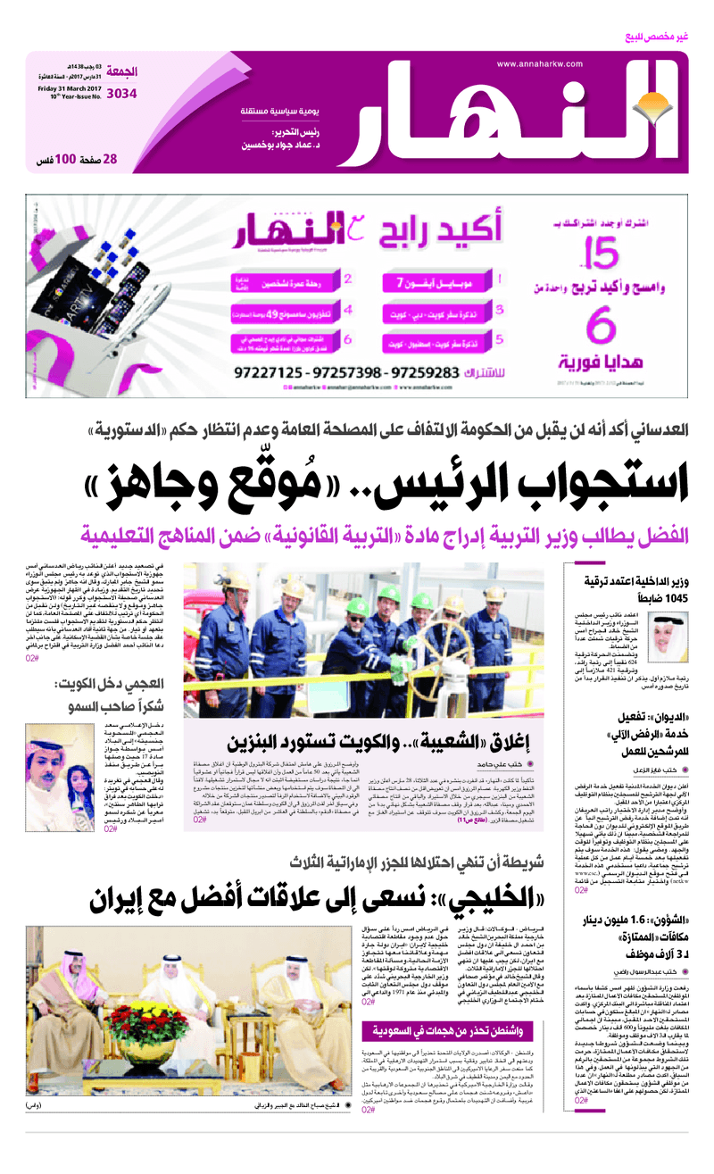 آخر الأخبار جرائم وقضايا “الجمارك” تضبط 29 ألف علبة مشروبات كحولية قادمة من دولة آسيوية في ميناء الشويخ 9 يونيو، 2024 محليات ممثلة عن دولة الكويت الطبيبة الكويتية أسماء الكندري تشارك في المؤتمر العالمي للمناظير في إيطاليا 8 يونيو، 2024 محليات “الصحة”: اكتمال وصول فريق الخدمات الطبية ببعثة الحج الكويتية لمكة المكرمة 8 يونيو، 2024 محليات “الصحة” تحدد 8 مراكز للصحة المدرسية لاستقبال الطلبة المبتعثين 8 يونيو، 2024 عربي وعالمي “الصحة العالمية”: تسجيل أول وفاة لشخص مصاب بـ«أنفلونزا الطيور» 7 يونيو، 2024 محليات عناوين الصحف الكويتية ليوم الجمعة 31 مارس 2017 محرر المحليات1 أبريل، 2017أضف تعليق1 دقائق جريدة الجريدة جريدة الأنباء جريدة السياسة جريدة الوطن جريدة الراي جريدة النهار الوسومعناوين الصحف المحلية من الممكن أن يعجبك محليات ممثلة عن دولة الكويت الطبيبة الكويتية أسماء الكندري تشارك في المؤتمر العالمي للمناظير في إيطاليا محليات “الصحة”: اكتمال وصول فريق الخدمات الطبية ببعثة الحج الكويتية لمكة المكرمة محليات “الصحة” تحدد 8 مراكز للصحة المدرسية لاستقبال الطلبة المبتعثين محليات العجمي : السماح بالتخييم في “جال الزور” مدمر للبيئة محليات وزير الصحة : تشكيل لجنة فنية لإعداد دراسة إنشاء مركز متخصص في “التصلب العصبي المتعدد” محليات مجلس الوزراء يوافق على محضري “لجنة تحقيق الجنسية” أضف تعليق أضغط هنا لإضافة تعليق إلغاء الردالتعليقالاسم البريد الإلكتروني الموقع الإلكتروني Δ هذا الموقع يستخدم خدمة أكيسميت للتقليل من البريد المزعجة. اعرف المزيد عن كيفية التعامل مع بيانات التعليقات الخاصة بك processed.