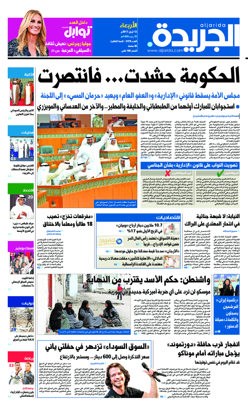 آخر الأخبار جرائم وقضايا “الجمارك” تضبط 29 ألف علبة مشروبات كحولية قادمة من دولة آسيوية في ميناء الشويخ 9 يونيو، 2024 محليات ممثلة عن دولة الكويت الطبيبة الكويتية أسماء الكندري تشارك في المؤتمر العالمي للمناظير في إيطاليا 8 يونيو، 2024 محليات “الصحة”: اكتمال وصول فريق الخدمات الطبية ببعثة الحج الكويتية لمكة المكرمة 8 يونيو، 2024 محليات “الصحة” تحدد 8 مراكز للصحة المدرسية لاستقبال الطلبة المبتعثين 8 يونيو، 2024 عربي وعالمي “الصحة العالمية”: تسجيل أول وفاة لشخص مصاب بـ«أنفلونزا الطيور» 7 يونيو، 2024 محليات عناوين الصحف الكويتية ليوم الأربعاء 12 أبريل 2017 محرر المحليات12 أبريل، 2017أضف تعليق1 دقائق جريدة الجريدة جريدة الأنباء جريدة السياسة جريدة الراي جريدة الوسط جريدة النهار الوسومTop عناوين الصحف المحلية من الممكن أن يعجبك جرائم وقضايا “الجمارك” تضبط 29 ألف علبة مشروبات كحولية قادمة من دولة آسيوية في ميناء الشويخ محليات ممثلة عن دولة الكويت الطبيبة الكويتية أسماء الكندري تشارك في المؤتمر العالمي للمناظير في إيطاليا محليات “الصحة”: اكتمال وصول فريق الخدمات الطبية ببعثة الحج الكويتية لمكة المكرمة محليات “الصحة” تحدد 8 مراكز للصحة المدرسية لاستقبال الطلبة المبتعثين عربي وعالمي “الصحة العالمية”: تسجيل أول وفاة لشخص مصاب بـ«أنفلونزا الطيور» تكنولوجيا رش السحب بملح البحر.. تجربة “ثورية” لتبريد كوكب الأرض أضف تعليق أضغط هنا لإضافة تعليق إلغاء الردالتعليقالاسم البريد الإلكتروني الموقع الإلكتروني Δ هذا الموقع يستخدم خدمة أكيسميت للتقليل من البريد المزعجة. اعرف المزيد عن كيفية التعامل مع بيانات التعليقات الخاصة بك processed.