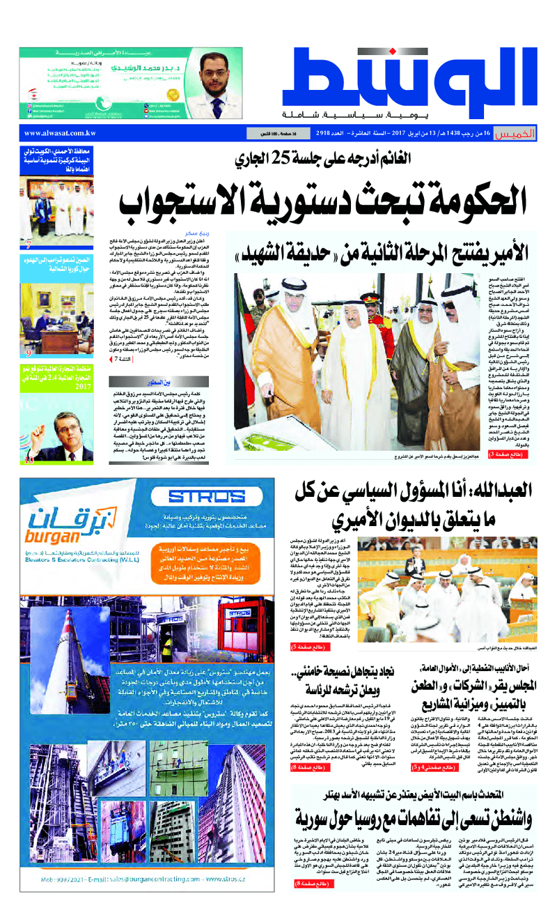 آخر الأخبار جرائم وقضايا “الجمارك” تضبط 29 ألف علبة مشروبات كحولية قادمة من دولة آسيوية في ميناء الشويخ 9 يونيو، 2024 محليات ممثلة عن دولة الكويت الطبيبة الكويتية أسماء الكندري تشارك في المؤتمر العالمي للمناظير في إيطاليا 8 يونيو، 2024 محليات “الصحة”: اكتمال وصول فريق الخدمات الطبية ببعثة الحج الكويتية لمكة المكرمة 8 يونيو، 2024 محليات “الصحة” تحدد 8 مراكز للصحة المدرسية لاستقبال الطلبة المبتعثين 8 يونيو، 2024 عربي وعالمي “الصحة العالمية”: تسجيل أول وفاة لشخص مصاب بـ«أنفلونزا الطيور» 7 يونيو، 2024 محليات عناوين الصحف الكويتية ليوم السبت 15 أبريل 2017 محرر المحليات15 أبريل، 2017أضف تعليق1 دقائق جريدة الجريدة جريدة الأنباء جريدة الوطن جريدة الراي جريدة الوسط الوسومTop عناوين الصحف المحلية من الممكن أن يعجبك جرائم وقضايا “الجمارك” تضبط 29 ألف علبة مشروبات كحولية قادمة من دولة آسيوية في ميناء الشويخ محليات ممثلة عن دولة الكويت الطبيبة الكويتية أسماء الكندري تشارك في المؤتمر العالمي للمناظير في إيطاليا محليات “الصحة”: اكتمال وصول فريق الخدمات الطبية ببعثة الحج الكويتية لمكة المكرمة محليات “الصحة” تحدد 8 مراكز للصحة المدرسية لاستقبال الطلبة المبتعثين عربي وعالمي “الصحة العالمية”: تسجيل أول وفاة لشخص مصاب بـ«أنفلونزا الطيور» تكنولوجيا رش السحب بملح البحر.. تجربة “ثورية” لتبريد كوكب الأرض أضف تعليق أضغط هنا لإضافة تعليق إلغاء الردالتعليقالاسم البريد الإلكتروني الموقع الإلكتروني Δ هذا الموقع يستخدم خدمة أكيسميت للتقليل من البريد المزعجة. اعرف المزيد عن كيفية التعامل مع بيانات التعليقات الخاصة بك processed.