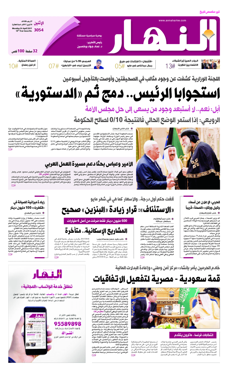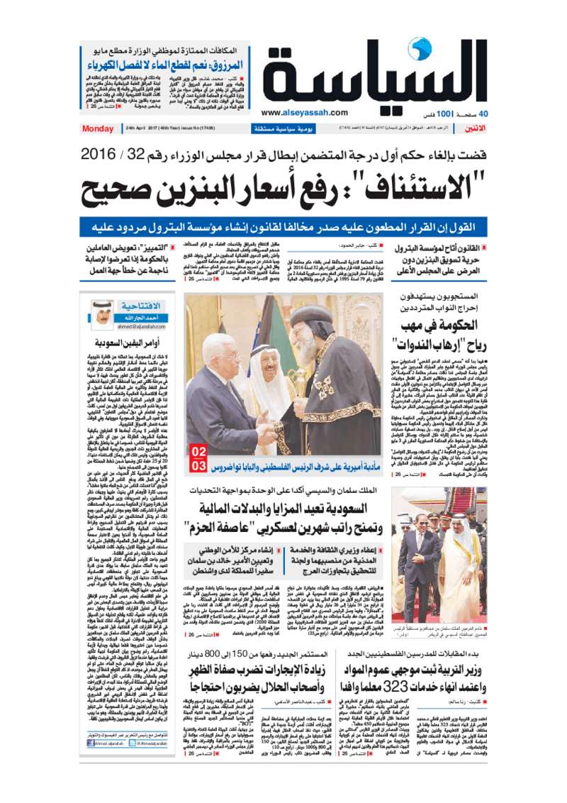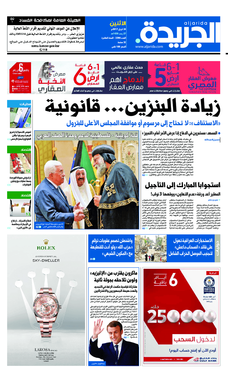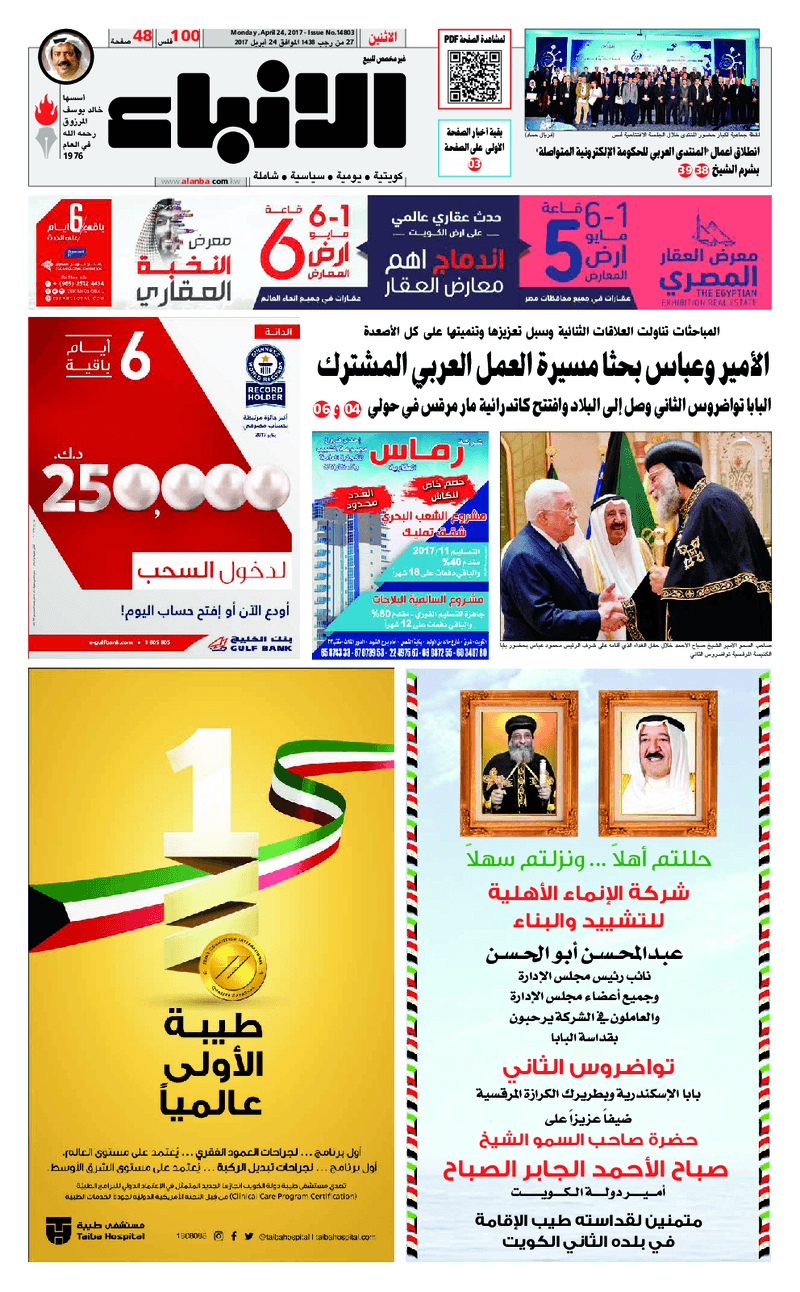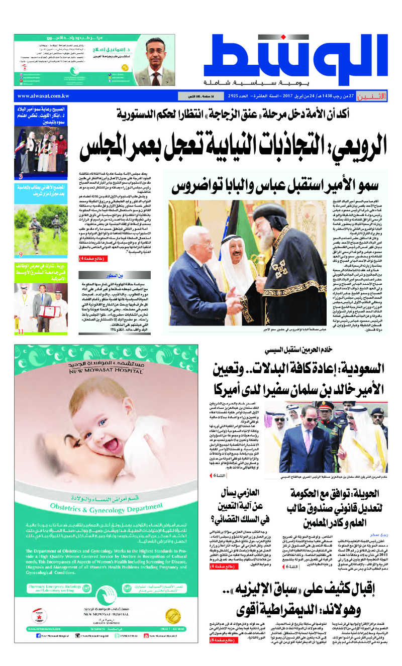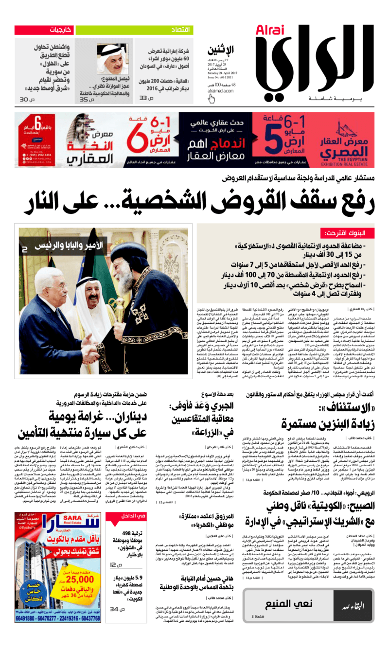 عناوين الصحف الكويتية ليوم الاثنين 24 أبريل 2017