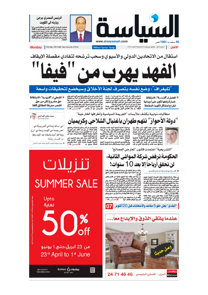 آخر الأخبار جرائم وقضايا “الجمارك” تضبط 29 ألف علبة مشروبات كحولية قادمة من دولة آسيوية في ميناء الشويخ 9 يونيو، 2024 محليات ممثلة عن دولة الكويت الطبيبة الكويتية أسماء الكندري تشارك في المؤتمر العالمي للمناظير في إيطاليا 8 يونيو، 2024 محليات “الصحة”: اكتمال وصول فريق الخدمات الطبية ببعثة الحج الكويتية لمكة المكرمة 8 يونيو، 2024 محليات “الصحة” تحدد 8 مراكز للصحة المدرسية لاستقبال الطلبة المبتعثين 8 يونيو، 2024 عربي وعالمي “الصحة العالمية”: تسجيل أول وفاة لشخص مصاب بـ«أنفلونزا الطيور» 7 يونيو، 2024 محليات عناوين الصحف الكويتية ليوم الاثنين 01 مايو 2017 محرر المحليات1 مايو، 2017أضف تعليق1 دقائق جريدة الجريدة جريدة الأنباء جريدة السياسة جريدة الوطن جريدة الراي جريدة الوسط جريدة النهار الوسومTop عناوين الصحف المحلية من الممكن أن يعجبك جرائم وقضايا “الجمارك” تضبط 29 ألف علبة مشروبات كحولية قادمة من دولة آسيوية في ميناء الشويخ محليات ممثلة عن دولة الكويت الطبيبة الكويتية أسماء الكندري تشارك في المؤتمر العالمي للمناظير في إيطاليا محليات “الصحة”: اكتمال وصول فريق الخدمات الطبية ببعثة الحج الكويتية لمكة المكرمة محليات “الصحة” تحدد 8 مراكز للصحة المدرسية لاستقبال الطلبة المبتعثين عربي وعالمي “الصحة العالمية”: تسجيل أول وفاة لشخص مصاب بـ«أنفلونزا الطيور» تكنولوجيا رش السحب بملح البحر.. تجربة “ثورية” لتبريد كوكب الأرض أضف تعليق أضغط هنا لإضافة تعليق إلغاء الردالتعليقالاسم البريد الإلكتروني الموقع الإلكتروني Δ هذا الموقع يستخدم خدمة أكيسميت للتقليل من البريد المزعجة. اعرف المزيد عن كيفية التعامل مع بيانات التعليقات الخاصة بك processed.