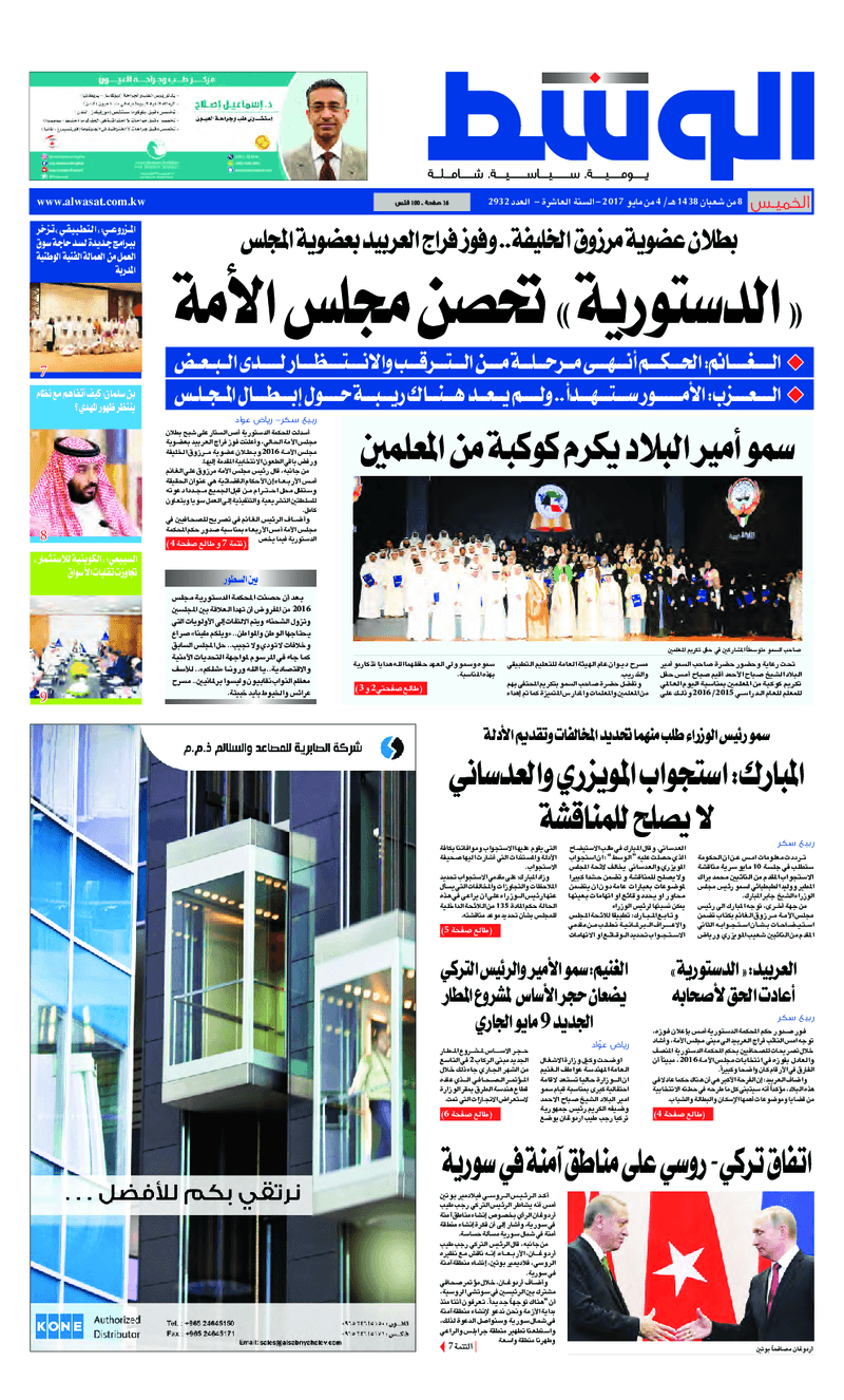 آخر الأخبار جرائم وقضايا “الجمارك” تضبط 29 ألف علبة مشروبات كحولية قادمة من دولة آسيوية في ميناء الشويخ 9 يونيو، 2024 محليات ممثلة عن دولة الكويت الطبيبة الكويتية أسماء الكندري تشارك في المؤتمر العالمي للمناظير في إيطاليا 8 يونيو، 2024 محليات “الصحة”: اكتمال وصول فريق الخدمات الطبية ببعثة الحج الكويتية لمكة المكرمة 8 يونيو، 2024 محليات “الصحة” تحدد 8 مراكز للصحة المدرسية لاستقبال الطلبة المبتعثين 8 يونيو، 2024 عربي وعالمي “الصحة العالمية”: تسجيل أول وفاة لشخص مصاب بـ«أنفلونزا الطيور» 7 يونيو، 2024 محليات عناوين الصحف الكويتية ليوم الخميس 04 مايو 2017 محرر المحليات4 مايو، 2017أضف تعليق1 دقائق جريدة الجريدة جريدة الأنباء جريدة السياسة جريدة الوطن جريدة الراي جريدة الوسط جريدة النهار الوسومTop عناوين الصحف المحلية من الممكن أن يعجبك جرائم وقضايا “الجمارك” تضبط 29 ألف علبة مشروبات كحولية قادمة من دولة آسيوية في ميناء الشويخ محليات ممثلة عن دولة الكويت الطبيبة الكويتية أسماء الكندري تشارك في المؤتمر العالمي للمناظير في إيطاليا محليات “الصحة”: اكتمال وصول فريق الخدمات الطبية ببعثة الحج الكويتية لمكة المكرمة محليات “الصحة” تحدد 8 مراكز للصحة المدرسية لاستقبال الطلبة المبتعثين عربي وعالمي “الصحة العالمية”: تسجيل أول وفاة لشخص مصاب بـ«أنفلونزا الطيور» تكنولوجيا رش السحب بملح البحر.. تجربة “ثورية” لتبريد كوكب الأرض أضف تعليق أضغط هنا لإضافة تعليق إلغاء الردالتعليقالاسم البريد الإلكتروني الموقع الإلكتروني Δ هذا الموقع يستخدم خدمة أكيسميت للتقليل من البريد المزعجة. اعرف المزيد عن كيفية التعامل مع بيانات التعليقات الخاصة بك processed.