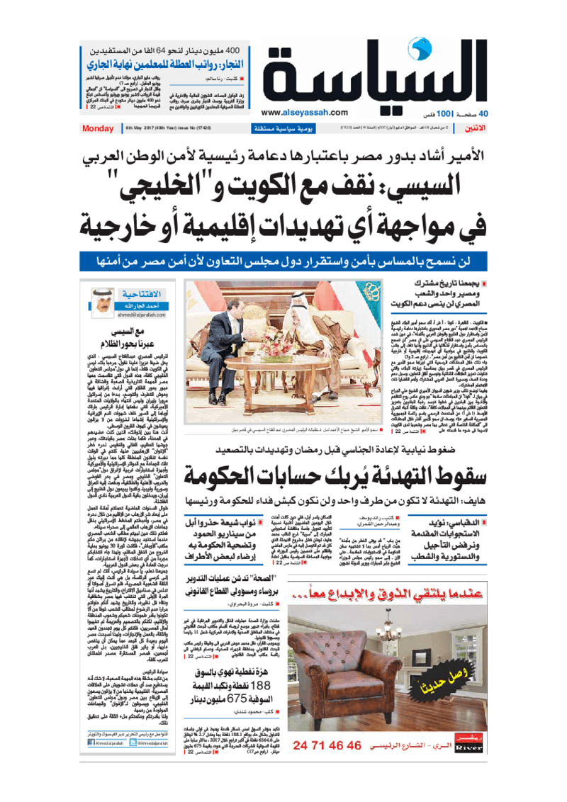 آخر الأخبار جرائم وقضايا “الجمارك” تضبط 29 ألف علبة مشروبات كحولية قادمة من دولة آسيوية في ميناء الشويخ 9 يونيو، 2024 محليات ممثلة عن دولة الكويت الطبيبة الكويتية أسماء الكندري تشارك في المؤتمر العالمي للمناظير في إيطاليا 8 يونيو، 2024 محليات “الصحة”: اكتمال وصول فريق الخدمات الطبية ببعثة الحج الكويتية لمكة المكرمة 8 يونيو، 2024 محليات “الصحة” تحدد 8 مراكز للصحة المدرسية لاستقبال الطلبة المبتعثين 8 يونيو، 2024 عربي وعالمي “الصحة العالمية”: تسجيل أول وفاة لشخص مصاب بـ«أنفلونزا الطيور» 7 يونيو، 2024 محليات عناوين الصحف الكويتية ليوم الاثنين 08 مايو 2017 محرر المحليات8 مايو، 2017أضف تعليق1 دقائق جريدة الجريدة جريدة الأنباء جريدة السياسة جريدة الوطن جريدة الراي جريدة الوسط جريدة النهار الوسومTop عناوين الصحف المحلية من الممكن أن يعجبك جرائم وقضايا “الجمارك” تضبط 29 ألف علبة مشروبات كحولية قادمة من دولة آسيوية في ميناء الشويخ محليات ممثلة عن دولة الكويت الطبيبة الكويتية أسماء الكندري تشارك في المؤتمر العالمي للمناظير في إيطاليا محليات “الصحة”: اكتمال وصول فريق الخدمات الطبية ببعثة الحج الكويتية لمكة المكرمة محليات “الصحة” تحدد 8 مراكز للصحة المدرسية لاستقبال الطلبة المبتعثين عربي وعالمي “الصحة العالمية”: تسجيل أول وفاة لشخص مصاب بـ«أنفلونزا الطيور» تكنولوجيا رش السحب بملح البحر.. تجربة “ثورية” لتبريد كوكب الأرض أضف تعليق أضغط هنا لإضافة تعليق إلغاء الردالتعليقالاسم البريد الإلكتروني الموقع الإلكتروني Δ هذا الموقع يستخدم خدمة أكيسميت للتقليل من البريد المزعجة. اعرف المزيد عن كيفية التعامل مع بيانات التعليقات الخاصة بك processed.