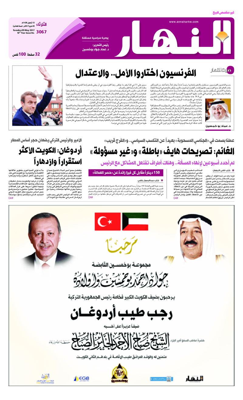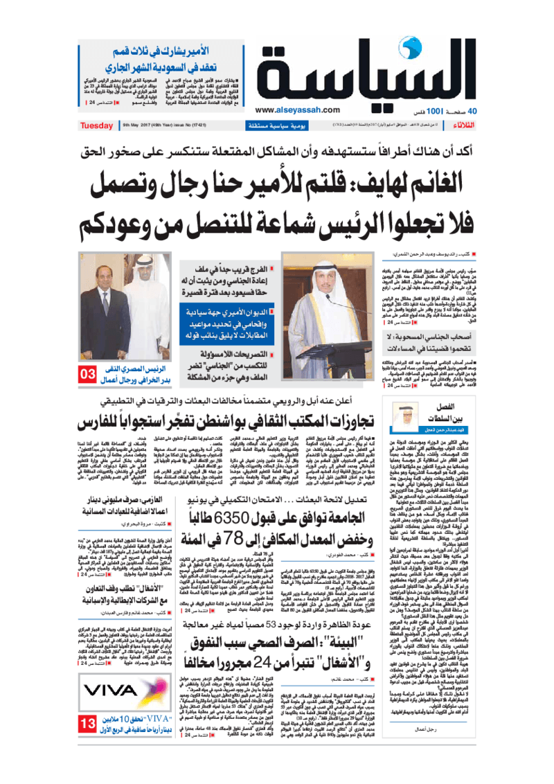 آخر الأخبار جرائم وقضايا “الجمارك” تضبط 29 ألف علبة مشروبات كحولية قادمة من دولة آسيوية في ميناء الشويخ 9 يونيو، 2024 محليات ممثلة عن دولة الكويت الطبيبة الكويتية أسماء الكندري تشارك في المؤتمر العالمي للمناظير في إيطاليا 8 يونيو، 2024 محليات “الصحة”: اكتمال وصول فريق الخدمات الطبية ببعثة الحج الكويتية لمكة المكرمة 8 يونيو، 2024 محليات “الصحة” تحدد 8 مراكز للصحة المدرسية لاستقبال الطلبة المبتعثين 8 يونيو، 2024 عربي وعالمي “الصحة العالمية”: تسجيل أول وفاة لشخص مصاب بـ«أنفلونزا الطيور» 7 يونيو، 2024 محليات عناوين الصحف الكويتية ليوم الثلاثاء 09 مايو 2017 محرر المحليات9 مايو، 2017أضف تعليق1 دقائق جريدة الجريدة جريدة الأنباء جريدة السياسة جريدة الوطن جريدة الراي جريدة الوسط جريدة النهار الوسومTop عناوين الصحف المحلية من الممكن أن يعجبك جرائم وقضايا “الجمارك” تضبط 29 ألف علبة مشروبات كحولية قادمة من دولة آسيوية في ميناء الشويخ محليات ممثلة عن دولة الكويت الطبيبة الكويتية أسماء الكندري تشارك في المؤتمر العالمي للمناظير في إيطاليا محليات “الصحة”: اكتمال وصول فريق الخدمات الطبية ببعثة الحج الكويتية لمكة المكرمة محليات “الصحة” تحدد 8 مراكز للصحة المدرسية لاستقبال الطلبة المبتعثين عربي وعالمي “الصحة العالمية”: تسجيل أول وفاة لشخص مصاب بـ«أنفلونزا الطيور» تكنولوجيا رش السحب بملح البحر.. تجربة “ثورية” لتبريد كوكب الأرض أضف تعليق أضغط هنا لإضافة تعليق إلغاء الردالتعليقالاسم البريد الإلكتروني الموقع الإلكتروني Δ هذا الموقع يستخدم خدمة أكيسميت للتقليل من البريد المزعجة. اعرف المزيد عن كيفية التعامل مع بيانات التعليقات الخاصة بك processed.