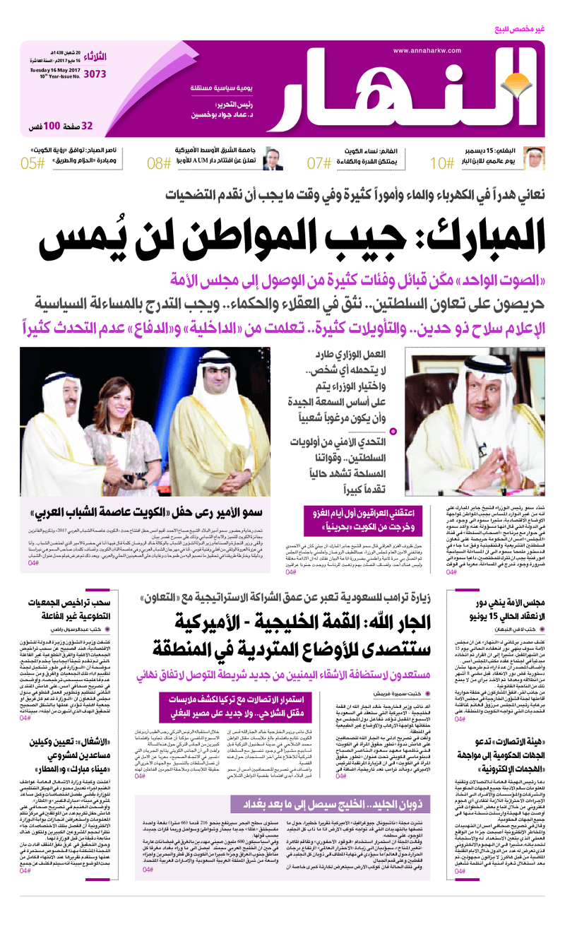 آخر الأخبار جرائم وقضايا “الجمارك” تضبط 29 ألف علبة مشروبات كحولية قادمة من دولة آسيوية في ميناء الشويخ 9 يونيو، 2024 محليات ممثلة عن دولة الكويت الطبيبة الكويتية أسماء الكندري تشارك في المؤتمر العالمي للمناظير في إيطاليا 8 يونيو، 2024 محليات “الصحة”: اكتمال وصول فريق الخدمات الطبية ببعثة الحج الكويتية لمكة المكرمة 8 يونيو، 2024 محليات “الصحة” تحدد 8 مراكز للصحة المدرسية لاستقبال الطلبة المبتعثين 8 يونيو، 2024 عربي وعالمي “الصحة العالمية”: تسجيل أول وفاة لشخص مصاب بـ«أنفلونزا الطيور» 7 يونيو، 2024 محليات عناوين الصحف الكويتية ليوم الثلاثاء 16 مايو 2017 محرر المحليات16 مايو، 2017أضف تعليق1 دقائق جريدة الجريدة جريدة الأنباء جريدة السياسة جريدة الوطن جريدة الراي جريدة الوسط جريدة النهار الوسومTop عناوين الصحف المحلية من الممكن أن يعجبك جرائم وقضايا “الجمارك” تضبط 29 ألف علبة مشروبات كحولية قادمة من دولة آسيوية في ميناء الشويخ محليات ممثلة عن دولة الكويت الطبيبة الكويتية أسماء الكندري تشارك في المؤتمر العالمي للمناظير في إيطاليا محليات “الصحة”: اكتمال وصول فريق الخدمات الطبية ببعثة الحج الكويتية لمكة المكرمة محليات “الصحة” تحدد 8 مراكز للصحة المدرسية لاستقبال الطلبة المبتعثين عربي وعالمي “الصحة العالمية”: تسجيل أول وفاة لشخص مصاب بـ«أنفلونزا الطيور» تكنولوجيا رش السحب بملح البحر.. تجربة “ثورية” لتبريد كوكب الأرض أضف تعليق أضغط هنا لإضافة تعليق إلغاء الردالتعليقالاسم البريد الإلكتروني الموقع الإلكتروني Δ هذا الموقع يستخدم خدمة أكيسميت للتقليل من البريد المزعجة. اعرف المزيد عن كيفية التعامل مع بيانات التعليقات الخاصة بك processed.