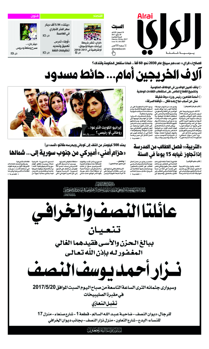 آخر الأخبار جرائم وقضايا “الجمارك” تضبط 29 ألف علبة مشروبات كحولية قادمة من دولة آسيوية في ميناء الشويخ 9 يونيو، 2024 محليات ممثلة عن دولة الكويت الطبيبة الكويتية أسماء الكندري تشارك في المؤتمر العالمي للمناظير في إيطاليا 8 يونيو، 2024 محليات “الصحة”: اكتمال وصول فريق الخدمات الطبية ببعثة الحج الكويتية لمكة المكرمة 8 يونيو، 2024 محليات “الصحة” تحدد 8 مراكز للصحة المدرسية لاستقبال الطلبة المبتعثين 8 يونيو، 2024 عربي وعالمي “الصحة العالمية”: تسجيل أول وفاة لشخص مصاب بـ«أنفلونزا الطيور» 7 يونيو، 2024 محليات عناوين الصحف الكويتية ليوم السبت 20 مايو 2017 محرر المحليات20 مايو، 2017أضف تعليق1 دقائق جريدة الجريدة جريدة الأنباء جريدة الراي الوسومTop عناوين الصحف المحلية من الممكن أن يعجبك جرائم وقضايا “الجمارك” تضبط 29 ألف علبة مشروبات كحولية قادمة من دولة آسيوية في ميناء الشويخ محليات ممثلة عن دولة الكويت الطبيبة الكويتية أسماء الكندري تشارك في المؤتمر العالمي للمناظير في إيطاليا محليات “الصحة”: اكتمال وصول فريق الخدمات الطبية ببعثة الحج الكويتية لمكة المكرمة محليات “الصحة” تحدد 8 مراكز للصحة المدرسية لاستقبال الطلبة المبتعثين عربي وعالمي “الصحة العالمية”: تسجيل أول وفاة لشخص مصاب بـ«أنفلونزا الطيور» تكنولوجيا رش السحب بملح البحر.. تجربة “ثورية” لتبريد كوكب الأرض أضف تعليق أضغط هنا لإضافة تعليق إلغاء الردالتعليقالاسم البريد الإلكتروني الموقع الإلكتروني Δ هذا الموقع يستخدم خدمة أكيسميت للتقليل من البريد المزعجة. اعرف المزيد عن كيفية التعامل مع بيانات التعليقات الخاصة بك processed.