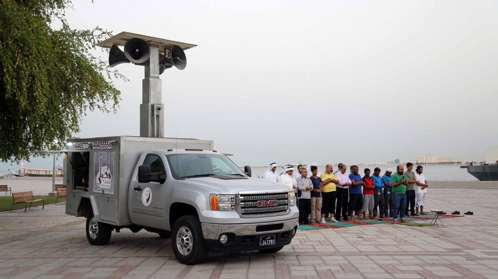 تنتشر في معظم المناطق في قطر لاسيما الاماكن العامة والحدائق العائلية والشبابية (مصليات متنقلة) تشتمل على تجهيزات خاصة تتضمن شاشات عرض واجهزة صوتية للاعلان عن شعيرة الاذان.