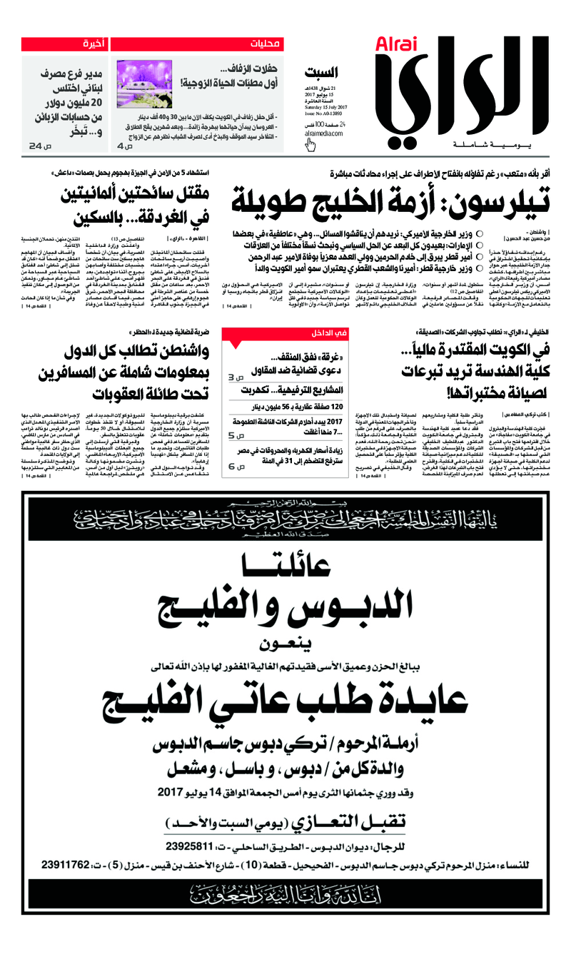 آخر الأخبار جرائم وقضايا “الجمارك” تضبط 29 ألف علبة مشروبات كحولية قادمة من دولة آسيوية في ميناء الشويخ 9 يونيو، 2024 محليات ممثلة عن دولة الكويت الطبيبة الكويتية أسماء الكندري تشارك في المؤتمر العالمي للمناظير في إيطاليا 8 يونيو، 2024 محليات “الصحة”: اكتمال وصول فريق الخدمات الطبية ببعثة الحج الكويتية لمكة المكرمة 8 يونيو، 2024 محليات “الصحة” تحدد 8 مراكز للصحة المدرسية لاستقبال الطلبة المبتعثين 8 يونيو، 2024 عربي وعالمي “الصحة العالمية”: تسجيل أول وفاة لشخص مصاب بـ«أنفلونزا الطيور» 7 يونيو، 2024 محليات عناوين الصحف الكويتية ليوم السبت 15 يوليو 2017 محرر المحليات15 يوليو، 2017أضف تعليق1 دقائق جريدة الجريدة جريدة الأنباء جريدة الوطن جريدة الراي الوسومTop عناوين الصحف المحلية من الممكن أن يعجبك جرائم وقضايا “الجمارك” تضبط 29 ألف علبة مشروبات كحولية قادمة من دولة آسيوية في ميناء الشويخ محليات ممثلة عن دولة الكويت الطبيبة الكويتية أسماء الكندري تشارك في المؤتمر العالمي للمناظير في إيطاليا محليات “الصحة”: اكتمال وصول فريق الخدمات الطبية ببعثة الحج الكويتية لمكة المكرمة محليات “الصحة” تحدد 8 مراكز للصحة المدرسية لاستقبال الطلبة المبتعثين عربي وعالمي “الصحة العالمية”: تسجيل أول وفاة لشخص مصاب بـ«أنفلونزا الطيور» تكنولوجيا رش السحب بملح البحر.. تجربة “ثورية” لتبريد كوكب الأرض أضف تعليق أضغط هنا لإضافة تعليق إلغاء الردالتعليقالاسم البريد الإلكتروني الموقع الإلكتروني Δ هذا الموقع يستخدم خدمة أكيسميت للتقليل من البريد المزعجة. اعرف المزيد عن كيفية التعامل مع بيانات التعليقات الخاصة بك processed.
