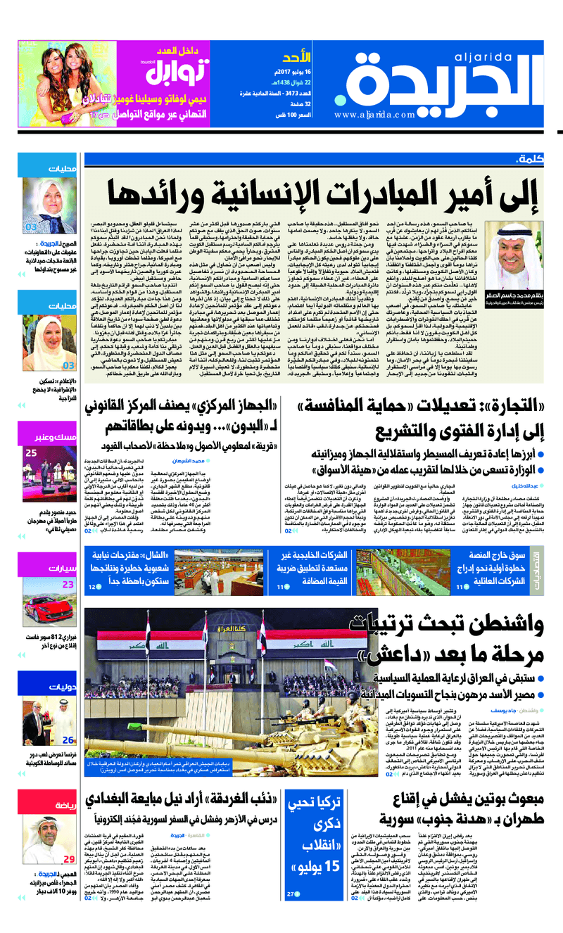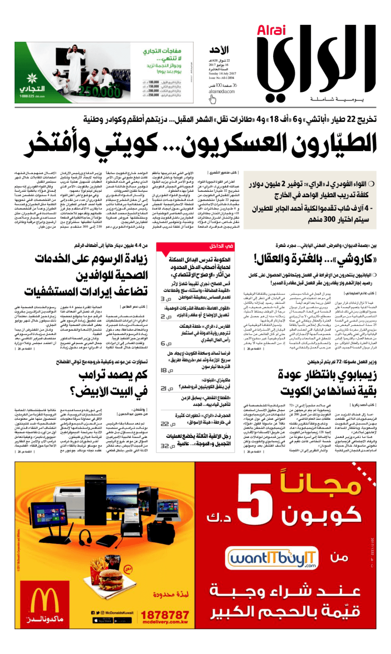 آخر الأخبار جرائم وقضايا “الجمارك” تضبط 29 ألف علبة مشروبات كحولية قادمة من دولة آسيوية في ميناء الشويخ 9 يونيو، 2024 محليات ممثلة عن دولة الكويت الطبيبة الكويتية أسماء الكندري تشارك في المؤتمر العالمي للمناظير في إيطاليا 8 يونيو، 2024 محليات “الصحة”: اكتمال وصول فريق الخدمات الطبية ببعثة الحج الكويتية لمكة المكرمة 8 يونيو، 2024 محليات “الصحة” تحدد 8 مراكز للصحة المدرسية لاستقبال الطلبة المبتعثين 8 يونيو، 2024 عربي وعالمي “الصحة العالمية”: تسجيل أول وفاة لشخص مصاب بـ«أنفلونزا الطيور» 7 يونيو، 2024 محليات عناوين الصحف الكويتية ليوم الأحد 16 يوليو 2017 محرر المحليات16 يوليو، 2017أضف تعليق1 دقائق جريدة الجريدة جريدة الأنباء جريدة الوطن جريدة الراي جريدة الوسط الوسومTop عناوين الصحف المحلية من الممكن أن يعجبك جرائم وقضايا “الجمارك” تضبط 29 ألف علبة مشروبات كحولية قادمة من دولة آسيوية في ميناء الشويخ محليات ممثلة عن دولة الكويت الطبيبة الكويتية أسماء الكندري تشارك في المؤتمر العالمي للمناظير في إيطاليا محليات “الصحة”: اكتمال وصول فريق الخدمات الطبية ببعثة الحج الكويتية لمكة المكرمة محليات “الصحة” تحدد 8 مراكز للصحة المدرسية لاستقبال الطلبة المبتعثين عربي وعالمي “الصحة العالمية”: تسجيل أول وفاة لشخص مصاب بـ«أنفلونزا الطيور» تكنولوجيا رش السحب بملح البحر.. تجربة “ثورية” لتبريد كوكب الأرض أضف تعليق أضغط هنا لإضافة تعليق إلغاء الردالتعليقالاسم البريد الإلكتروني الموقع الإلكتروني Δ هذا الموقع يستخدم خدمة أكيسميت للتقليل من البريد المزعجة. اعرف المزيد عن كيفية التعامل مع بيانات التعليقات الخاصة بك processed.