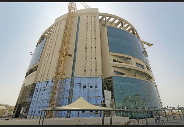وأوضح ان المبنى يتكون من سردابين لمواقف السيارات ودور أرضي وثمانية أدوار اضافة الى ان الواجهة الأمامية للمبنى زجاجية تسمح بمرور الإضاءة الطبيعية للمبنى توفيرا لاستهلاك الطاقة ومتناسقة مع واجهات الرخام.