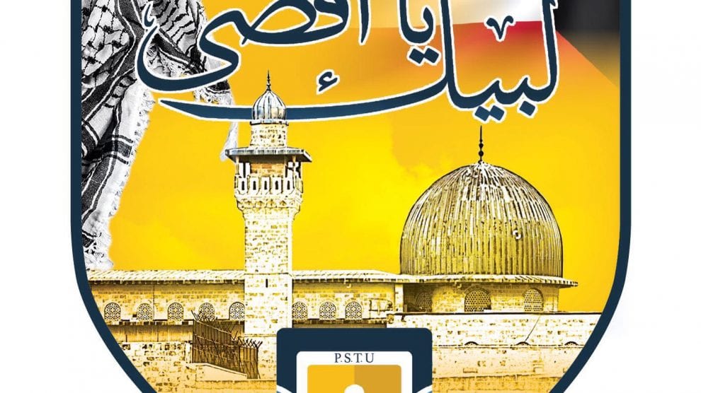 أعلن الاتحاد العام لطلبة ومتدربي الهيئة العامة للتعليم التطبيقي والتدريب في بيان صحافي له عن تنظيم حملة تحت عنوان “لبيك يا أقصى” وقال البيان أن تلك الحملة تأتي للتضامن مع الشعب الفلسطيني لنصرة المسجد الاقصى بعد حصاره والانتهاكات التي قامت بها قوات الاحتلال الصهيوني ومنع المسلمين من الصلاة بداخله.