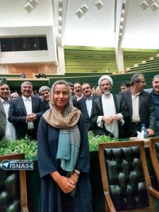وبعد انتهاء الحفل بادر العديد من أعضاء مجلس الشوري الإيراني وغيرهم من السياسيين إلى التقاط صور تذكارية وحتى “سيلفي” مع المسؤولة الأوروبية.