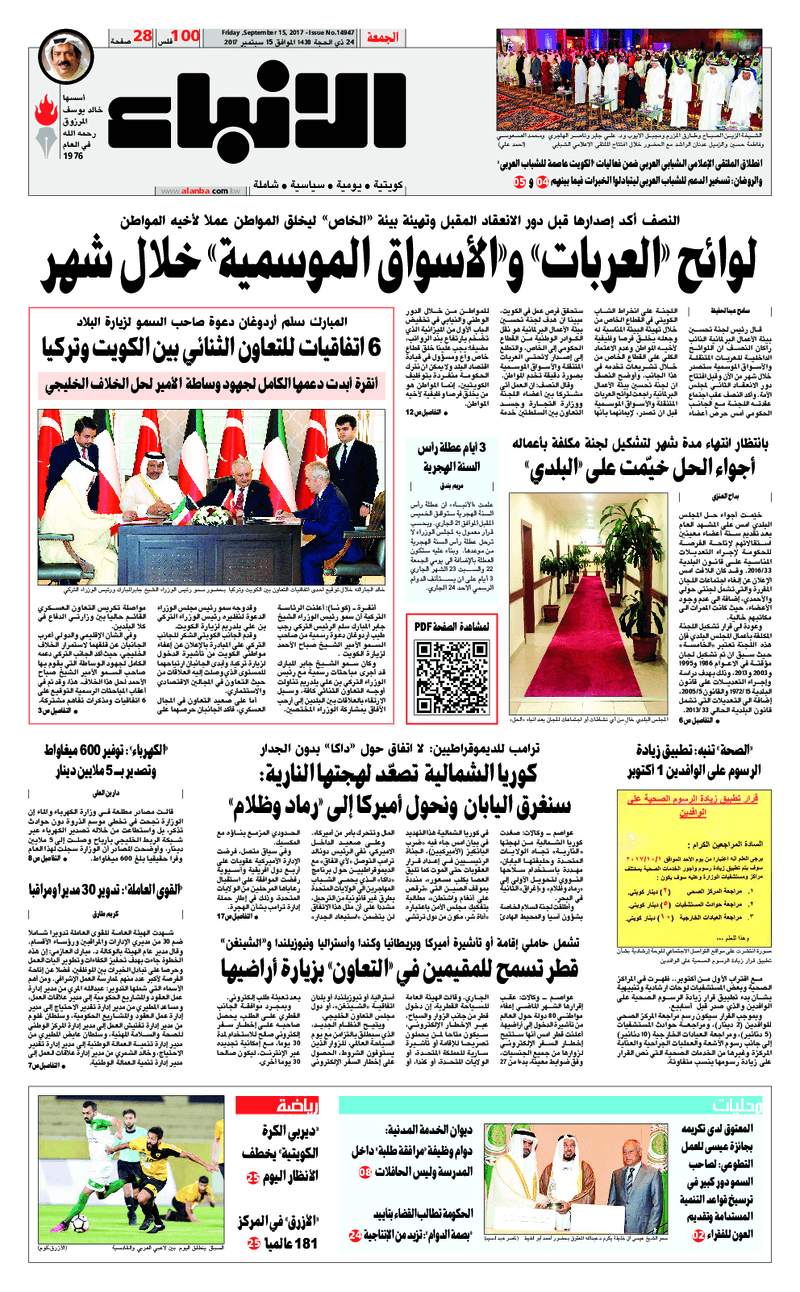 آخر الأخبار جرائم وقضايا “الجمارك” تضبط 29 ألف علبة مشروبات كحولية قادمة من دولة آسيوية في ميناء الشويخ 9 يونيو، 2024 محليات ممثلة عن دولة الكويت الطبيبة الكويتية أسماء الكندري تشارك في المؤتمر العالمي للمناظير في إيطاليا 8 يونيو، 2024 محليات “الصحة”: اكتمال وصول فريق الخدمات الطبية ببعثة الحج الكويتية لمكة المكرمة 8 يونيو، 2024 محليات “الصحة” تحدد 8 مراكز للصحة المدرسية لاستقبال الطلبة المبتعثين 8 يونيو، 2024 عربي وعالمي “الصحة العالمية”: تسجيل أول وفاة لشخص مصاب بـ«أنفلونزا الطيور» 7 يونيو، 2024 محليات عناوين الصحف الكويتية ليوم الجمعة 15 سبتمبر 2017 محرر المحليات15 سبتمبر، 2017أضف تعليق1 دقائق جريدة الجريدة جريدة الأنباء جريدة السياسة جريدة الراي جريدة النهار الوسومTop عناوين الصحف المحلية من الممكن أن يعجبك جرائم وقضايا “الجمارك” تضبط 29 ألف علبة مشروبات كحولية قادمة من دولة آسيوية في ميناء الشويخ محليات ممثلة عن دولة الكويت الطبيبة الكويتية أسماء الكندري تشارك في المؤتمر العالمي للمناظير في إيطاليا محليات “الصحة”: اكتمال وصول فريق الخدمات الطبية ببعثة الحج الكويتية لمكة المكرمة محليات “الصحة” تحدد 8 مراكز للصحة المدرسية لاستقبال الطلبة المبتعثين عربي وعالمي “الصحة العالمية”: تسجيل أول وفاة لشخص مصاب بـ«أنفلونزا الطيور» تكنولوجيا رش السحب بملح البحر.. تجربة “ثورية” لتبريد كوكب الأرض أضف تعليق أضغط هنا لإضافة تعليق إلغاء الردالتعليقالاسم البريد الإلكتروني الموقع الإلكتروني Δ هذا الموقع يستخدم خدمة أكيسميت للتقليل من البريد المزعجة. اعرف المزيد عن كيفية التعامل مع بيانات التعليقات الخاصة بك processed.