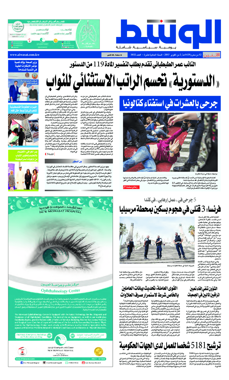 آخر الأخبار جرائم وقضايا “الجمارك” تضبط 29 ألف علبة مشروبات كحولية قادمة من دولة آسيوية في ميناء الشويخ 9 يونيو، 2024 محليات ممثلة عن دولة الكويت الطبيبة الكويتية أسماء الكندري تشارك في المؤتمر العالمي للمناظير في إيطاليا 8 يونيو، 2024 محليات “الصحة”: اكتمال وصول فريق الخدمات الطبية ببعثة الحج الكويتية لمكة المكرمة 8 يونيو، 2024 محليات “الصحة” تحدد 8 مراكز للصحة المدرسية لاستقبال الطلبة المبتعثين 8 يونيو، 2024 عربي وعالمي “الصحة العالمية”: تسجيل أول وفاة لشخص مصاب بـ«أنفلونزا الطيور» 7 يونيو، 2024 محليات عناوين الصحف الكويتية ليوم الاثنين 02 أكتوبر 2017 محرر المحليات2 أكتوبر، 2017أضف تعليق1 دقائق جريدة الجريدة جريدة الأنباء جريدة السياسة جريدة الراي جريدة الوسط جريدة النهار الوسومTop عناوين الصحف المحلية من الممكن أن يعجبك جرائم وقضايا “الجمارك” تضبط 29 ألف علبة مشروبات كحولية قادمة من دولة آسيوية في ميناء الشويخ محليات ممثلة عن دولة الكويت الطبيبة الكويتية أسماء الكندري تشارك في المؤتمر العالمي للمناظير في إيطاليا محليات “الصحة”: اكتمال وصول فريق الخدمات الطبية ببعثة الحج الكويتية لمكة المكرمة محليات “الصحة” تحدد 8 مراكز للصحة المدرسية لاستقبال الطلبة المبتعثين عربي وعالمي “الصحة العالمية”: تسجيل أول وفاة لشخص مصاب بـ«أنفلونزا الطيور» تكنولوجيا رش السحب بملح البحر.. تجربة “ثورية” لتبريد كوكب الأرض أضف تعليق أضغط هنا لإضافة تعليق إلغاء الردالتعليقالاسم البريد الإلكتروني الموقع الإلكتروني Δ هذا الموقع يستخدم خدمة أكيسميت للتقليل من البريد المزعجة. اعرف المزيد عن كيفية التعامل مع بيانات التعليقات الخاصة بك processed.