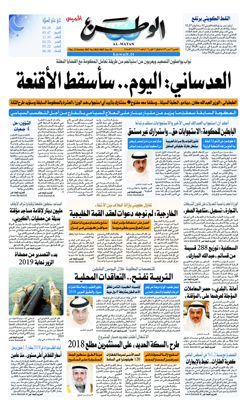 آخر الأخبار جرائم وقضايا “الجمارك” تضبط 29 ألف علبة مشروبات كحولية قادمة من دولة آسيوية في ميناء الشويخ 9 يونيو، 2024 محليات ممثلة عن دولة الكويت الطبيبة الكويتية أسماء الكندري تشارك في المؤتمر العالمي للمناظير في إيطاليا 8 يونيو، 2024 محليات “الصحة”: اكتمال وصول فريق الخدمات الطبية ببعثة الحج الكويتية لمكة المكرمة 8 يونيو، 2024 محليات “الصحة” تحدد 8 مراكز للصحة المدرسية لاستقبال الطلبة المبتعثين 8 يونيو، 2024 عربي وعالمي “الصحة العالمية”: تسجيل أول وفاة لشخص مصاب بـ«أنفلونزا الطيور» 7 يونيو، 2024 محليات عناوين الصحف الكويتية ليوم الخميس 12 أكتوبر 2017 محرر المحليات12 أكتوبر، 2017أضف تعليق1 دقائق جريدة الجريدة جريدة الأنباء جريدة السياسة جريدة الوطن جريدة الراي جريدة النهار الوسومTop عناوين الصحف المحلية من الممكن أن يعجبك جرائم وقضايا “الجمارك” تضبط 29 ألف علبة مشروبات كحولية قادمة من دولة آسيوية في ميناء الشويخ محليات ممثلة عن دولة الكويت الطبيبة الكويتية أسماء الكندري تشارك في المؤتمر العالمي للمناظير في إيطاليا محليات “الصحة”: اكتمال وصول فريق الخدمات الطبية ببعثة الحج الكويتية لمكة المكرمة محليات “الصحة” تحدد 8 مراكز للصحة المدرسية لاستقبال الطلبة المبتعثين عربي وعالمي “الصحة العالمية”: تسجيل أول وفاة لشخص مصاب بـ«أنفلونزا الطيور» تكنولوجيا رش السحب بملح البحر.. تجربة “ثورية” لتبريد كوكب الأرض أضف تعليق أضغط هنا لإضافة تعليق إلغاء الردالتعليقالاسم البريد الإلكتروني الموقع الإلكتروني Δ هذا الموقع يستخدم خدمة أكيسميت للتقليل من البريد المزعجة. اعرف المزيد عن كيفية التعامل مع بيانات التعليقات الخاصة بك processed.