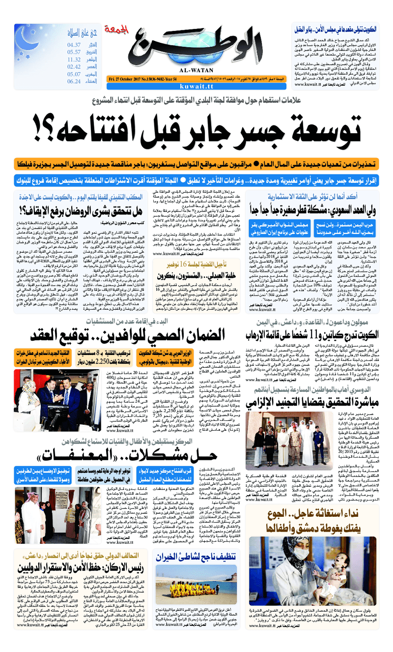 آخر الأخبار جرائم وقضايا “الجمارك” تضبط 29 ألف علبة مشروبات كحولية قادمة من دولة آسيوية في ميناء الشويخ 9 يونيو، 2024 محليات ممثلة عن دولة الكويت الطبيبة الكويتية أسماء الكندري تشارك في المؤتمر العالمي للمناظير في إيطاليا 8 يونيو، 2024 محليات “الصحة”: اكتمال وصول فريق الخدمات الطبية ببعثة الحج الكويتية لمكة المكرمة 8 يونيو، 2024 محليات “الصحة” تحدد 8 مراكز للصحة المدرسية لاستقبال الطلبة المبتعثين 8 يونيو، 2024 عربي وعالمي “الصحة العالمية”: تسجيل أول وفاة لشخص مصاب بـ«أنفلونزا الطيور» 7 يونيو، 2024 محليات عناوين الصحف الكويتية ليوم الجمعة 27 أكتوبر 2017 محرر المحليات27 أكتوبر، 2017أضف تعليق1 دقائق جريدة الجريدة جريدة الأنباء جريدة السياسة جريدة الوطن جريدة الراي جريدة النهار الوسومTop عناوين الصحف المحلية من الممكن أن يعجبك جرائم وقضايا “الجمارك” تضبط 29 ألف علبة مشروبات كحولية قادمة من دولة آسيوية في ميناء الشويخ محليات ممثلة عن دولة الكويت الطبيبة الكويتية أسماء الكندري تشارك في المؤتمر العالمي للمناظير في إيطاليا محليات “الصحة”: اكتمال وصول فريق الخدمات الطبية ببعثة الحج الكويتية لمكة المكرمة محليات “الصحة” تحدد 8 مراكز للصحة المدرسية لاستقبال الطلبة المبتعثين عربي وعالمي “الصحة العالمية”: تسجيل أول وفاة لشخص مصاب بـ«أنفلونزا الطيور» تكنولوجيا رش السحب بملح البحر.. تجربة “ثورية” لتبريد كوكب الأرض أضف تعليق أضغط هنا لإضافة تعليق إلغاء الردالتعليقالاسم البريد الإلكتروني الموقع الإلكتروني Δ هذا الموقع يستخدم خدمة أكيسميت للتقليل من البريد المزعجة. اعرف المزيد عن كيفية التعامل مع بيانات التعليقات الخاصة بك processed.