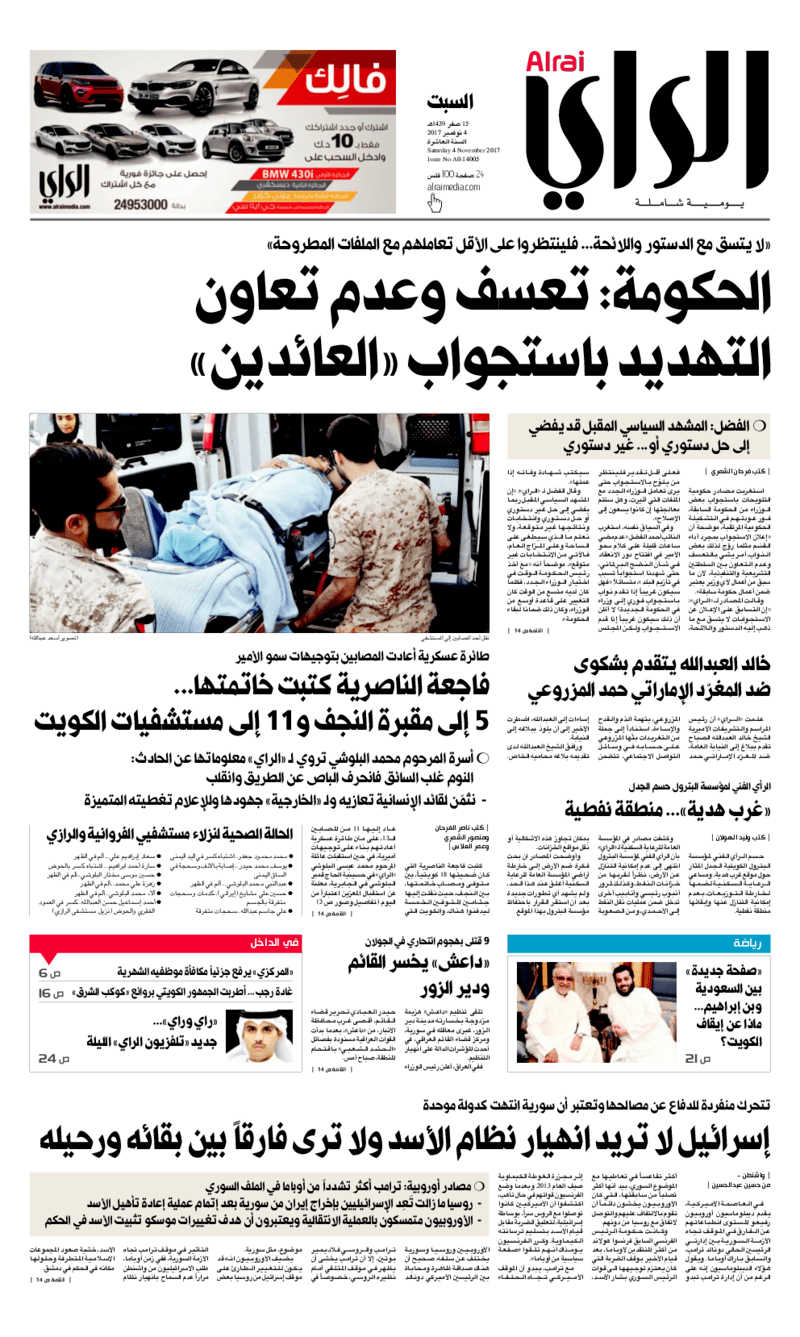 آخر الأخبار جرائم وقضايا “الجمارك” تضبط 29 ألف علبة مشروبات كحولية قادمة من دولة آسيوية في ميناء الشويخ 9 يونيو، 2024 محليات ممثلة عن دولة الكويت الطبيبة الكويتية أسماء الكندري تشارك في المؤتمر العالمي للمناظير في إيطاليا 8 يونيو، 2024 محليات “الصحة”: اكتمال وصول فريق الخدمات الطبية ببعثة الحج الكويتية لمكة المكرمة 8 يونيو، 2024 محليات “الصحة” تحدد 8 مراكز للصحة المدرسية لاستقبال الطلبة المبتعثين 8 يونيو، 2024 عربي وعالمي “الصحة العالمية”: تسجيل أول وفاة لشخص مصاب بـ«أنفلونزا الطيور» 7 يونيو، 2024 محليات عناوين الصحف الكويتية ليوم السبت 04 نوفمبر 2017 محرر المحليات4 نوفمبر، 2017أضف تعليق1 دقائق جريدة الجريدة جريدة الأنباء جريدة الوطن جريدة الراي الوسومTop عناوين الصحف المحلية من الممكن أن يعجبك جرائم وقضايا “الجمارك” تضبط 29 ألف علبة مشروبات كحولية قادمة من دولة آسيوية في ميناء الشويخ محليات ممثلة عن دولة الكويت الطبيبة الكويتية أسماء الكندري تشارك في المؤتمر العالمي للمناظير في إيطاليا محليات “الصحة”: اكتمال وصول فريق الخدمات الطبية ببعثة الحج الكويتية لمكة المكرمة محليات “الصحة” تحدد 8 مراكز للصحة المدرسية لاستقبال الطلبة المبتعثين عربي وعالمي “الصحة العالمية”: تسجيل أول وفاة لشخص مصاب بـ«أنفلونزا الطيور» تكنولوجيا رش السحب بملح البحر.. تجربة “ثورية” لتبريد كوكب الأرض أضف تعليق أضغط هنا لإضافة تعليق إلغاء الردالتعليقالاسم البريد الإلكتروني الموقع الإلكتروني Δ هذا الموقع يستخدم خدمة أكيسميت للتقليل من البريد المزعجة. اعرف المزيد عن كيفية التعامل مع بيانات التعليقات الخاصة بك processed.