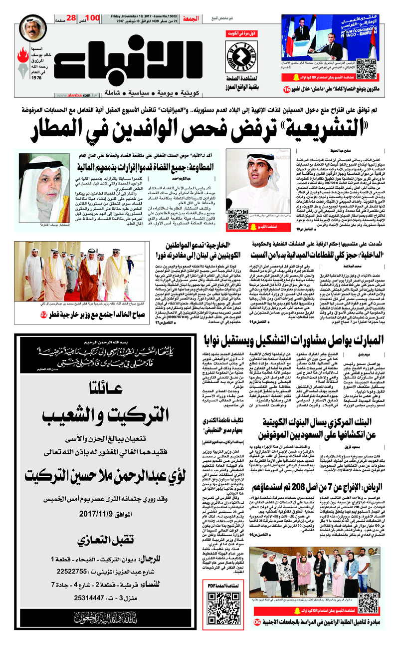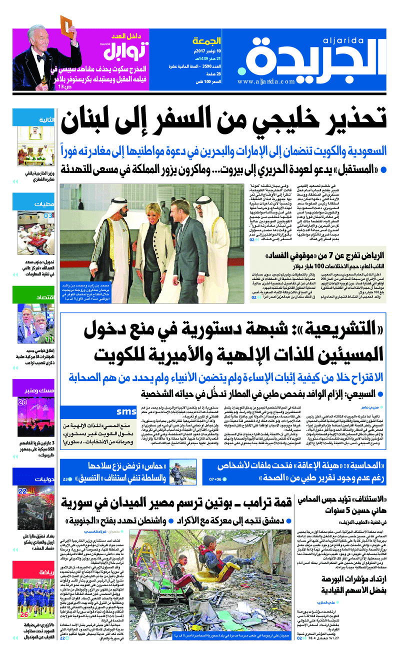 آخر الأخبار جرائم وقضايا “الجمارك” تضبط 29 ألف علبة مشروبات كحولية قادمة من دولة آسيوية في ميناء الشويخ 9 يونيو، 2024 محليات ممثلة عن دولة الكويت الطبيبة الكويتية أسماء الكندري تشارك في المؤتمر العالمي للمناظير في إيطاليا 8 يونيو، 2024 محليات “الصحة”: اكتمال وصول فريق الخدمات الطبية ببعثة الحج الكويتية لمكة المكرمة 8 يونيو، 2024 محليات “الصحة” تحدد 8 مراكز للصحة المدرسية لاستقبال الطلبة المبتعثين 8 يونيو، 2024 عربي وعالمي “الصحة العالمية”: تسجيل أول وفاة لشخص مصاب بـ«أنفلونزا الطيور» 7 يونيو، 2024 محليات عناوين الصحف الكويتية ليوم الجمعة 10 نوفمبر 2017 محرر المحليات10 نوفمبر، 2017أضف تعليق1 دقائق جريدة الجريدة جريدة الأنباء جريدة السياسة جريدة الراي جريدة النهار الوسومTop عناوين الصحف المحلية من الممكن أن يعجبك جرائم وقضايا “الجمارك” تضبط 29 ألف علبة مشروبات كحولية قادمة من دولة آسيوية في ميناء الشويخ محليات ممثلة عن دولة الكويت الطبيبة الكويتية أسماء الكندري تشارك في المؤتمر العالمي للمناظير في إيطاليا محليات “الصحة”: اكتمال وصول فريق الخدمات الطبية ببعثة الحج الكويتية لمكة المكرمة محليات “الصحة” تحدد 8 مراكز للصحة المدرسية لاستقبال الطلبة المبتعثين عربي وعالمي “الصحة العالمية”: تسجيل أول وفاة لشخص مصاب بـ«أنفلونزا الطيور» تكنولوجيا رش السحب بملح البحر.. تجربة “ثورية” لتبريد كوكب الأرض أضف تعليق أضغط هنا لإضافة تعليق إلغاء الردالتعليقالاسم البريد الإلكتروني الموقع الإلكتروني Δ هذا الموقع يستخدم خدمة أكيسميت للتقليل من البريد المزعجة. اعرف المزيد عن كيفية التعامل مع بيانات التعليقات الخاصة بك processed.