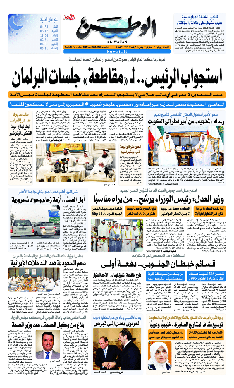 آخر الأخبار جرائم وقضايا “الجمارك” تضبط 29 ألف علبة مشروبات كحولية قادمة من دولة آسيوية في ميناء الشويخ 9 يونيو، 2024 محليات ممثلة عن دولة الكويت الطبيبة الكويتية أسماء الكندري تشارك في المؤتمر العالمي للمناظير في إيطاليا 8 يونيو، 2024 محليات “الصحة”: اكتمال وصول فريق الخدمات الطبية ببعثة الحج الكويتية لمكة المكرمة 8 يونيو، 2024 محليات “الصحة” تحدد 8 مراكز للصحة المدرسية لاستقبال الطلبة المبتعثين 8 يونيو، 2024 عربي وعالمي “الصحة العالمية”: تسجيل أول وفاة لشخص مصاب بـ«أنفلونزا الطيور» 7 يونيو، 2024 محليات عناوين الصحف الكويتية ليوم الأربعاء 22 نوفمبر 2017 محرر المحليات22 نوفمبر، 2017أضف تعليق1 دقائق جريدة الجريدة جريدة الأنباء جريدة السياسة جريدة الوطن جريدة الراي جريدة النهار الوسومTop عناوين الصحف المحلية من الممكن أن يعجبك جرائم وقضايا “الجمارك” تضبط 29 ألف علبة مشروبات كحولية قادمة من دولة آسيوية في ميناء الشويخ محليات ممثلة عن دولة الكويت الطبيبة الكويتية أسماء الكندري تشارك في المؤتمر العالمي للمناظير في إيطاليا محليات “الصحة”: اكتمال وصول فريق الخدمات الطبية ببعثة الحج الكويتية لمكة المكرمة محليات “الصحة” تحدد 8 مراكز للصحة المدرسية لاستقبال الطلبة المبتعثين عربي وعالمي “الصحة العالمية”: تسجيل أول وفاة لشخص مصاب بـ«أنفلونزا الطيور» تكنولوجيا رش السحب بملح البحر.. تجربة “ثورية” لتبريد كوكب الأرض أضف تعليق أضغط هنا لإضافة تعليق إلغاء الردالتعليقالاسم البريد الإلكتروني الموقع الإلكتروني Δ هذا الموقع يستخدم خدمة أكيسميت للتقليل من البريد المزعجة. اعرف المزيد عن كيفية التعامل مع بيانات التعليقات الخاصة بك processed.