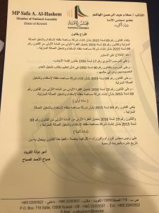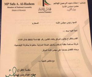 أعلنت النائب صفاء الهاشم أنها تقدمت اليوم بإقتراح بقانون لإلغاء المرسوم الوزارى بإنشاء شركة الدرة لإستقدام وتشغيل العمالة المنزلية.