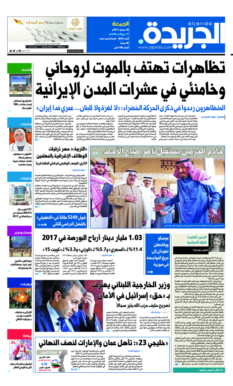 آخر الأخبار جرائم وقضايا “الجمارك” تضبط 29 ألف علبة مشروبات كحولية قادمة من دولة آسيوية في ميناء الشويخ 9 يونيو، 2024 محليات ممثلة عن دولة الكويت الطبيبة الكويتية أسماء الكندري تشارك في المؤتمر العالمي للمناظير في إيطاليا 8 يونيو، 2024 محليات “الصحة”: اكتمال وصول فريق الخدمات الطبية ببعثة الحج الكويتية لمكة المكرمة 8 يونيو، 2024 محليات “الصحة” تحدد 8 مراكز للصحة المدرسية لاستقبال الطلبة المبتعثين 8 يونيو، 2024 عربي وعالمي “الصحة العالمية”: تسجيل أول وفاة لشخص مصاب بـ«أنفلونزا الطيور» 7 يونيو، 2024 محليات عناوين الصحف الكويتية ليوم الجمعة 29 ديسمبر 2017 محرر المحليات29 ديسمبر، 2017أضف تعليق1 دقائق جريدة الجريدة جريدة السياسة الوسومTop عناوين الصحف المحلية من الممكن أن يعجبك جرائم وقضايا “الجمارك” تضبط 29 ألف علبة مشروبات كحولية قادمة من دولة آسيوية في ميناء الشويخ محليات ممثلة عن دولة الكويت الطبيبة الكويتية أسماء الكندري تشارك في المؤتمر العالمي للمناظير في إيطاليا محليات “الصحة”: اكتمال وصول فريق الخدمات الطبية ببعثة الحج الكويتية لمكة المكرمة محليات “الصحة” تحدد 8 مراكز للصحة المدرسية لاستقبال الطلبة المبتعثين عربي وعالمي “الصحة العالمية”: تسجيل أول وفاة لشخص مصاب بـ«أنفلونزا الطيور» تكنولوجيا رش السحب بملح البحر.. تجربة “ثورية” لتبريد كوكب الأرض أضف تعليق أضغط هنا لإضافة تعليق إلغاء الردالتعليقالاسم البريد الإلكتروني الموقع الإلكتروني Δ هذا الموقع يستخدم خدمة أكيسميت للتقليل من البريد المزعجة. اعرف المزيد عن كيفية التعامل مع بيانات التعليقات الخاصة بك processed.