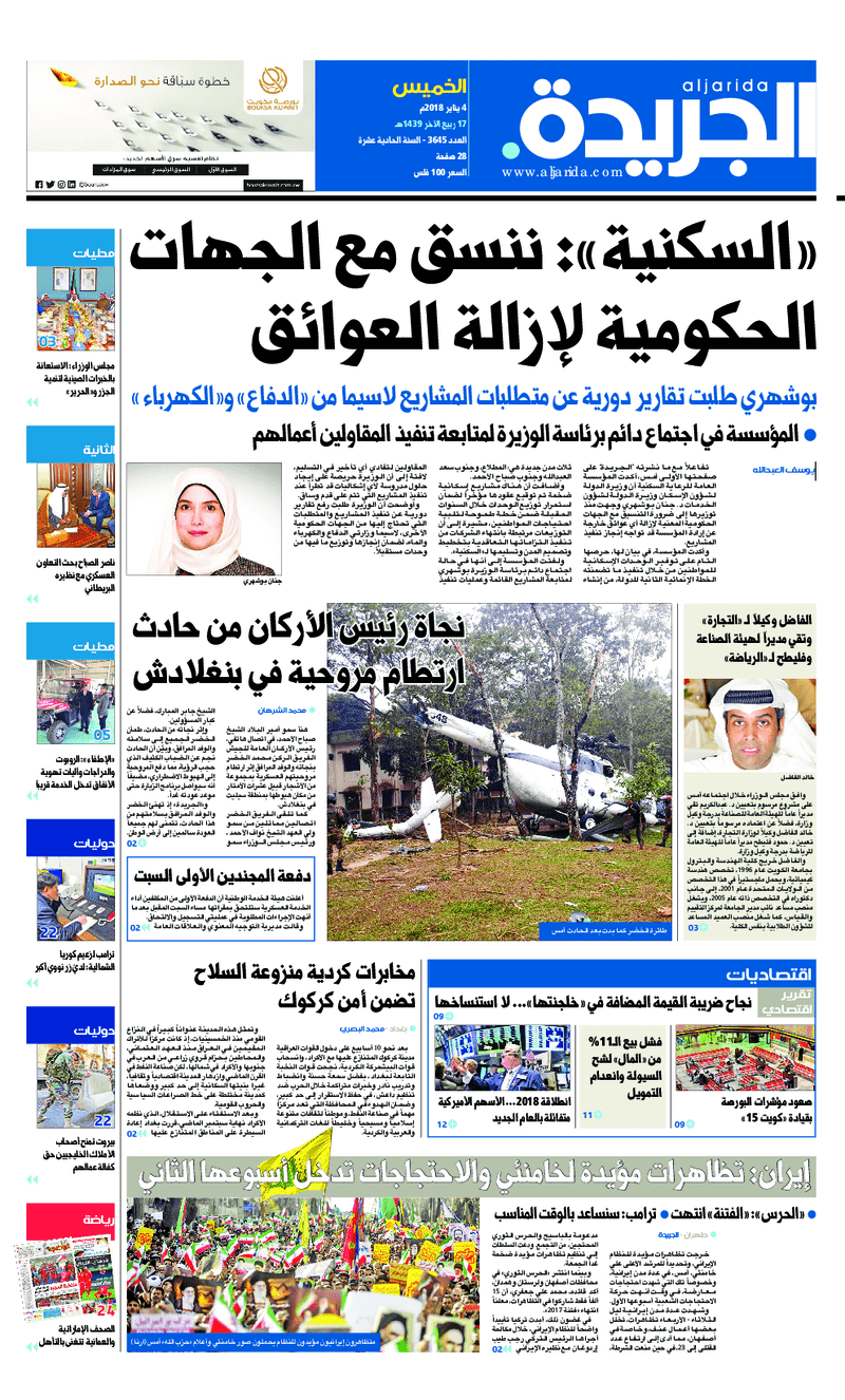 آخر الأخبار جرائم وقضايا “الجمارك” تضبط 29 ألف علبة مشروبات كحولية قادمة من دولة آسيوية في ميناء الشويخ 9 يونيو، 2024 محليات ممثلة عن دولة الكويت الطبيبة الكويتية أسماء الكندري تشارك في المؤتمر العالمي للمناظير في إيطاليا 8 يونيو، 2024 محليات “الصحة”: اكتمال وصول فريق الخدمات الطبية ببعثة الحج الكويتية لمكة المكرمة 8 يونيو، 2024 محليات “الصحة” تحدد 8 مراكز للصحة المدرسية لاستقبال الطلبة المبتعثين 8 يونيو، 2024 عربي وعالمي “الصحة العالمية”: تسجيل أول وفاة لشخص مصاب بـ«أنفلونزا الطيور» 7 يونيو، 2024 محليات عناوين الصحف الكويتية ليوم الخميس 04 يناير 2018 محرر المحليات4 يناير، 2018أضف تعليق1 دقائق جريدة الجريدة جريدة السياسة جريدة الوطن جريدة النهار الوسومTop عناوين الصحف المحلية من الممكن أن يعجبك جرائم وقضايا “الجمارك” تضبط 29 ألف علبة مشروبات كحولية قادمة من دولة آسيوية في ميناء الشويخ محليات ممثلة عن دولة الكويت الطبيبة الكويتية أسماء الكندري تشارك في المؤتمر العالمي للمناظير في إيطاليا محليات “الصحة”: اكتمال وصول فريق الخدمات الطبية ببعثة الحج الكويتية لمكة المكرمة محليات “الصحة” تحدد 8 مراكز للصحة المدرسية لاستقبال الطلبة المبتعثين عربي وعالمي “الصحة العالمية”: تسجيل أول وفاة لشخص مصاب بـ«أنفلونزا الطيور» تكنولوجيا رش السحب بملح البحر.. تجربة “ثورية” لتبريد كوكب الأرض أضف تعليق أضغط هنا لإضافة تعليق إلغاء الردالتعليقالاسم البريد الإلكتروني الموقع الإلكتروني Δ هذا الموقع يستخدم خدمة أكيسميت للتقليل من البريد المزعجة. اعرف المزيد عن كيفية التعامل مع بيانات التعليقات الخاصة بك processed.