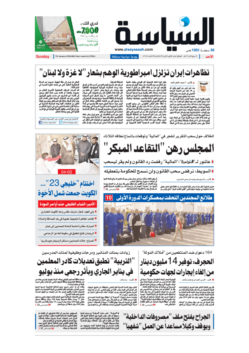 آخر الأخبار جرائم وقضايا “الجمارك” تضبط 29 ألف علبة مشروبات كحولية قادمة من دولة آسيوية في ميناء الشويخ 9 يونيو، 2024 محليات ممثلة عن دولة الكويت الطبيبة الكويتية أسماء الكندري تشارك في المؤتمر العالمي للمناظير في إيطاليا 8 يونيو، 2024 محليات “الصحة”: اكتمال وصول فريق الخدمات الطبية ببعثة الحج الكويتية لمكة المكرمة 8 يونيو، 2024 محليات “الصحة” تحدد 8 مراكز للصحة المدرسية لاستقبال الطلبة المبتعثين 8 يونيو، 2024 عربي وعالمي “الصحة العالمية”: تسجيل أول وفاة لشخص مصاب بـ«أنفلونزا الطيور» 7 يونيو، 2024 محليات عناوين الصحف الكويتية ليوم الأحد 07 يناير 2018 محرر المحليات7 يناير، 2018أضف تعليق1 دقائق جريدة الجريدة جريدة السياسة جريدة النهار الوسومTop عناوين الصحف المحلية من الممكن أن يعجبك جرائم وقضايا “الجمارك” تضبط 29 ألف علبة مشروبات كحولية قادمة من دولة آسيوية في ميناء الشويخ محليات ممثلة عن دولة الكويت الطبيبة الكويتية أسماء الكندري تشارك في المؤتمر العالمي للمناظير في إيطاليا محليات “الصحة”: اكتمال وصول فريق الخدمات الطبية ببعثة الحج الكويتية لمكة المكرمة محليات “الصحة” تحدد 8 مراكز للصحة المدرسية لاستقبال الطلبة المبتعثين عربي وعالمي “الصحة العالمية”: تسجيل أول وفاة لشخص مصاب بـ«أنفلونزا الطيور» تكنولوجيا رش السحب بملح البحر.. تجربة “ثورية” لتبريد كوكب الأرض أضف تعليق أضغط هنا لإضافة تعليق إلغاء الردالتعليقالاسم البريد الإلكتروني الموقع الإلكتروني Δ هذا الموقع يستخدم خدمة أكيسميت للتقليل من البريد المزعجة. اعرف المزيد عن كيفية التعامل مع بيانات التعليقات الخاصة بك processed.