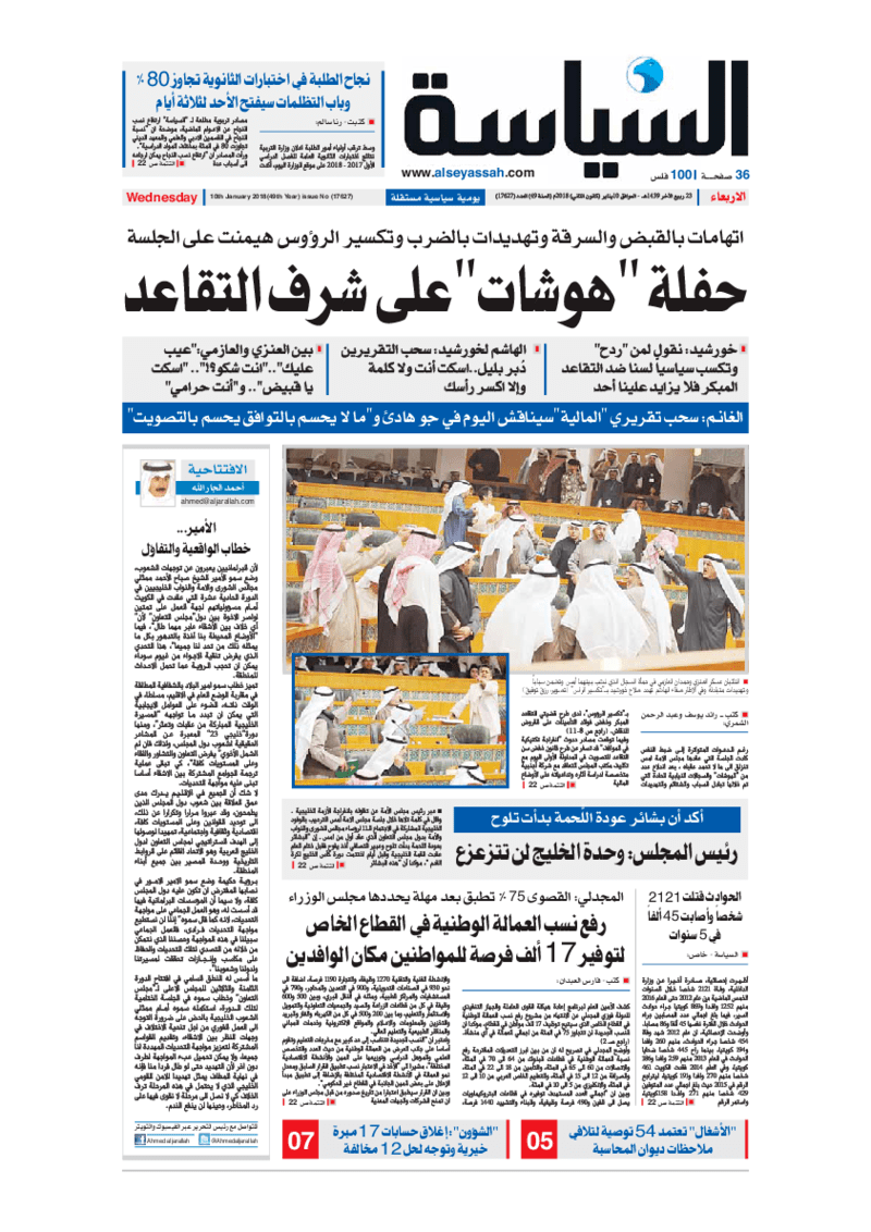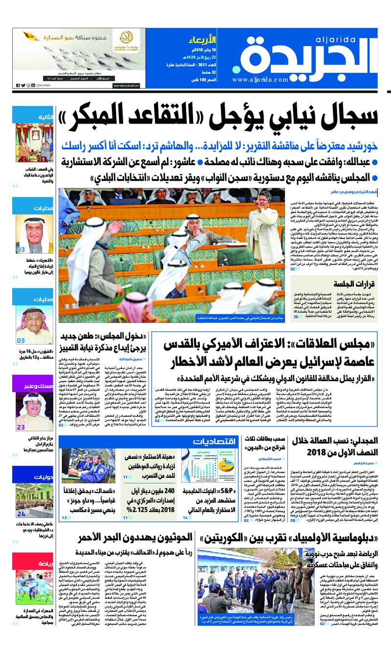 آخر الأخبار جرائم وقضايا “الجمارك” تضبط 29 ألف علبة مشروبات كحولية قادمة من دولة آسيوية في ميناء الشويخ 9 يونيو، 2024 محليات ممثلة عن دولة الكويت الطبيبة الكويتية أسماء الكندري تشارك في المؤتمر العالمي للمناظير في إيطاليا 8 يونيو، 2024 محليات “الصحة”: اكتمال وصول فريق الخدمات الطبية ببعثة الحج الكويتية لمكة المكرمة 8 يونيو، 2024 محليات “الصحة” تحدد 8 مراكز للصحة المدرسية لاستقبال الطلبة المبتعثين 8 يونيو، 2024 عربي وعالمي “الصحة العالمية”: تسجيل أول وفاة لشخص مصاب بـ«أنفلونزا الطيور» 7 يونيو، 2024 محليات عناوين الصحف الكويتية ليوم الأربعاء 10 يناير 2018 محرر المحليات10 يناير، 2018أضف تعليق1 دقائق جريدة الجريدة جريدة السياسة جريدة الوطن جريدة النهار الوسومTop عناوين الصحف المحلية من الممكن أن يعجبك جرائم وقضايا “الجمارك” تضبط 29 ألف علبة مشروبات كحولية قادمة من دولة آسيوية في ميناء الشويخ محليات ممثلة عن دولة الكويت الطبيبة الكويتية أسماء الكندري تشارك في المؤتمر العالمي للمناظير في إيطاليا محليات “الصحة”: اكتمال وصول فريق الخدمات الطبية ببعثة الحج الكويتية لمكة المكرمة محليات “الصحة” تحدد 8 مراكز للصحة المدرسية لاستقبال الطلبة المبتعثين عربي وعالمي “الصحة العالمية”: تسجيل أول وفاة لشخص مصاب بـ«أنفلونزا الطيور» تكنولوجيا رش السحب بملح البحر.. تجربة “ثورية” لتبريد كوكب الأرض أضف تعليق أضغط هنا لإضافة تعليق إلغاء الردالتعليقالاسم البريد الإلكتروني الموقع الإلكتروني Δ هذا الموقع يستخدم خدمة أكيسميت للتقليل من البريد المزعجة. اعرف المزيد عن كيفية التعامل مع بيانات التعليقات الخاصة بك processed.