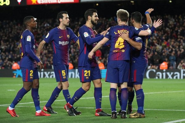 وسجل الارجنتيني ليونيل ميسي (13 و15) وجوردي البا (28) والاوروغوياني لويس سواريز (31) والكرواتي ايفان راكيتيتش (87) الاهداف الخمسة.