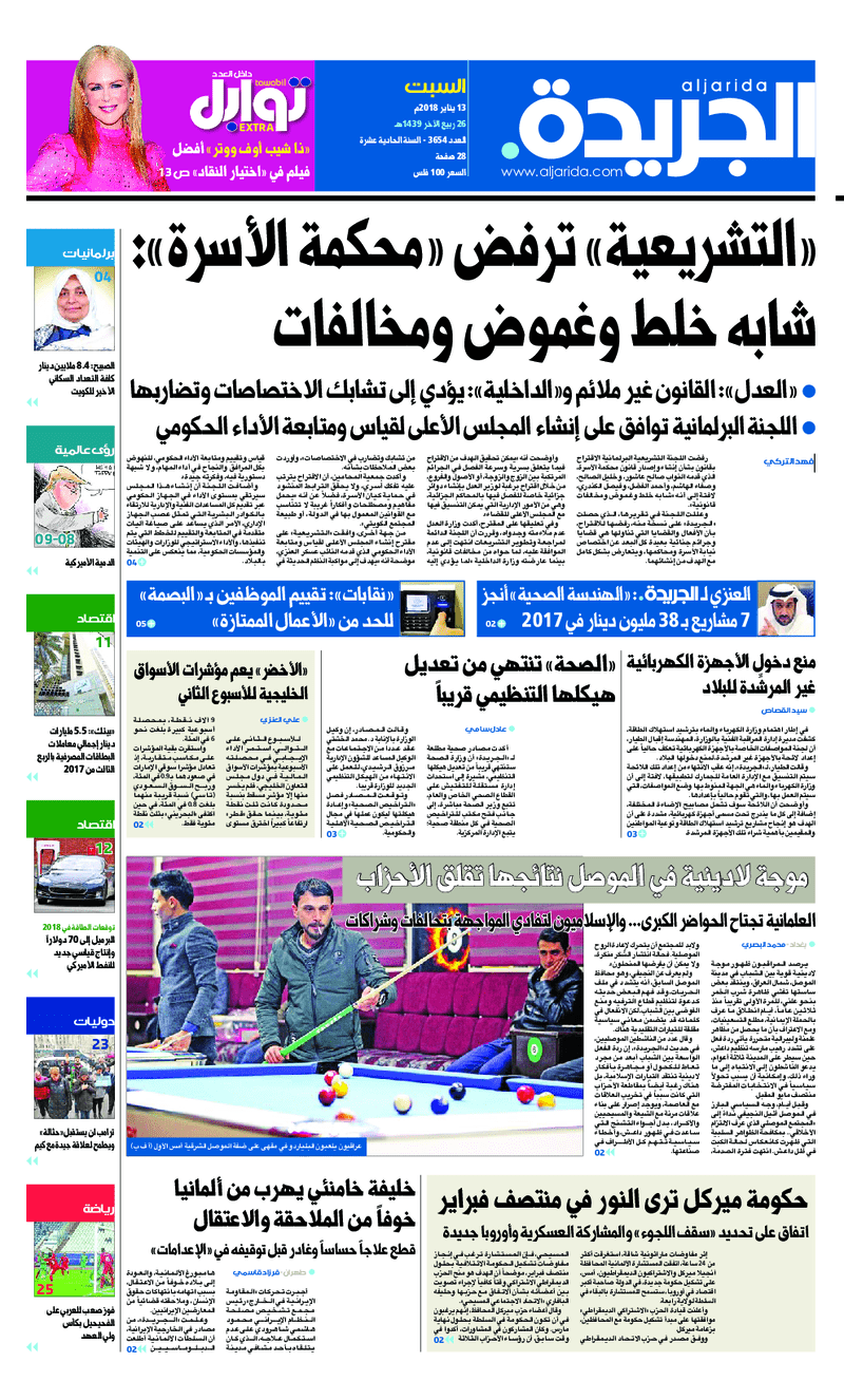 آخر الأخبار جرائم وقضايا “الجمارك” تضبط 29 ألف علبة مشروبات كحولية قادمة من دولة آسيوية في ميناء الشويخ 9 يونيو، 2024 محليات ممثلة عن دولة الكويت الطبيبة الكويتية أسماء الكندري تشارك في المؤتمر العالمي للمناظير في إيطاليا 8 يونيو، 2024 محليات “الصحة”: اكتمال وصول فريق الخدمات الطبية ببعثة الحج الكويتية لمكة المكرمة 8 يونيو، 2024 محليات “الصحة” تحدد 8 مراكز للصحة المدرسية لاستقبال الطلبة المبتعثين 8 يونيو، 2024 عربي وعالمي “الصحة العالمية”: تسجيل أول وفاة لشخص مصاب بـ«أنفلونزا الطيور» 7 يونيو، 2024 محليات عناوين الصحف الكويتية ليوم السبت 13 يناير 2018 محرر المحليات13 يناير، 2018أضف تعليق1 دقائق جريدة الجريدة جريدة السياسة جريدة الوطن الوسومTop عناوين الصحف المحلية من الممكن أن يعجبك جرائم وقضايا “الجمارك” تضبط 29 ألف علبة مشروبات كحولية قادمة من دولة آسيوية في ميناء الشويخ محليات ممثلة عن دولة الكويت الطبيبة الكويتية أسماء الكندري تشارك في المؤتمر العالمي للمناظير في إيطاليا محليات “الصحة”: اكتمال وصول فريق الخدمات الطبية ببعثة الحج الكويتية لمكة المكرمة محليات “الصحة” تحدد 8 مراكز للصحة المدرسية لاستقبال الطلبة المبتعثين عربي وعالمي “الصحة العالمية”: تسجيل أول وفاة لشخص مصاب بـ«أنفلونزا الطيور» تكنولوجيا رش السحب بملح البحر.. تجربة “ثورية” لتبريد كوكب الأرض أضف تعليق أضغط هنا لإضافة تعليق إلغاء الردالتعليقالاسم البريد الإلكتروني الموقع الإلكتروني Δ هذا الموقع يستخدم خدمة أكيسميت للتقليل من البريد المزعجة. اعرف المزيد عن كيفية التعامل مع بيانات التعليقات الخاصة بك processed.