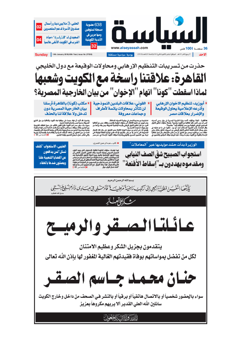 آخر الأخبار جرائم وقضايا “الجمارك” تضبط 29 ألف علبة مشروبات كحولية قادمة من دولة آسيوية في ميناء الشويخ 9 يونيو، 2024 محليات ممثلة عن دولة الكويت الطبيبة الكويتية أسماء الكندري تشارك في المؤتمر العالمي للمناظير في إيطاليا 8 يونيو، 2024 محليات “الصحة”: اكتمال وصول فريق الخدمات الطبية ببعثة الحج الكويتية لمكة المكرمة 8 يونيو، 2024 محليات “الصحة” تحدد 8 مراكز للصحة المدرسية لاستقبال الطلبة المبتعثين 8 يونيو، 2024 عربي وعالمي “الصحة العالمية”: تسجيل أول وفاة لشخص مصاب بـ«أنفلونزا الطيور» 7 يونيو، 2024 محليات عناوين الصحف الكويتية ليوم الأحد 14 يناير 2018 محرر المحليات14 يناير، 2018أضف تعليق1 دقائق جريدة الجريدة جريدة السياسة جريدة النهار الوسومTop عناوين الصحف المحلية من الممكن أن يعجبك جرائم وقضايا “الجمارك” تضبط 29 ألف علبة مشروبات كحولية قادمة من دولة آسيوية في ميناء الشويخ محليات ممثلة عن دولة الكويت الطبيبة الكويتية أسماء الكندري تشارك في المؤتمر العالمي للمناظير في إيطاليا محليات “الصحة”: اكتمال وصول فريق الخدمات الطبية ببعثة الحج الكويتية لمكة المكرمة محليات “الصحة” تحدد 8 مراكز للصحة المدرسية لاستقبال الطلبة المبتعثين عربي وعالمي “الصحة العالمية”: تسجيل أول وفاة لشخص مصاب بـ«أنفلونزا الطيور» تكنولوجيا رش السحب بملح البحر.. تجربة “ثورية” لتبريد كوكب الأرض أضف تعليق أضغط هنا لإضافة تعليق إلغاء الردالتعليقالاسم البريد الإلكتروني الموقع الإلكتروني Δ هذا الموقع يستخدم خدمة أكيسميت للتقليل من البريد المزعجة. اعرف المزيد عن كيفية التعامل مع بيانات التعليقات الخاصة بك processed.