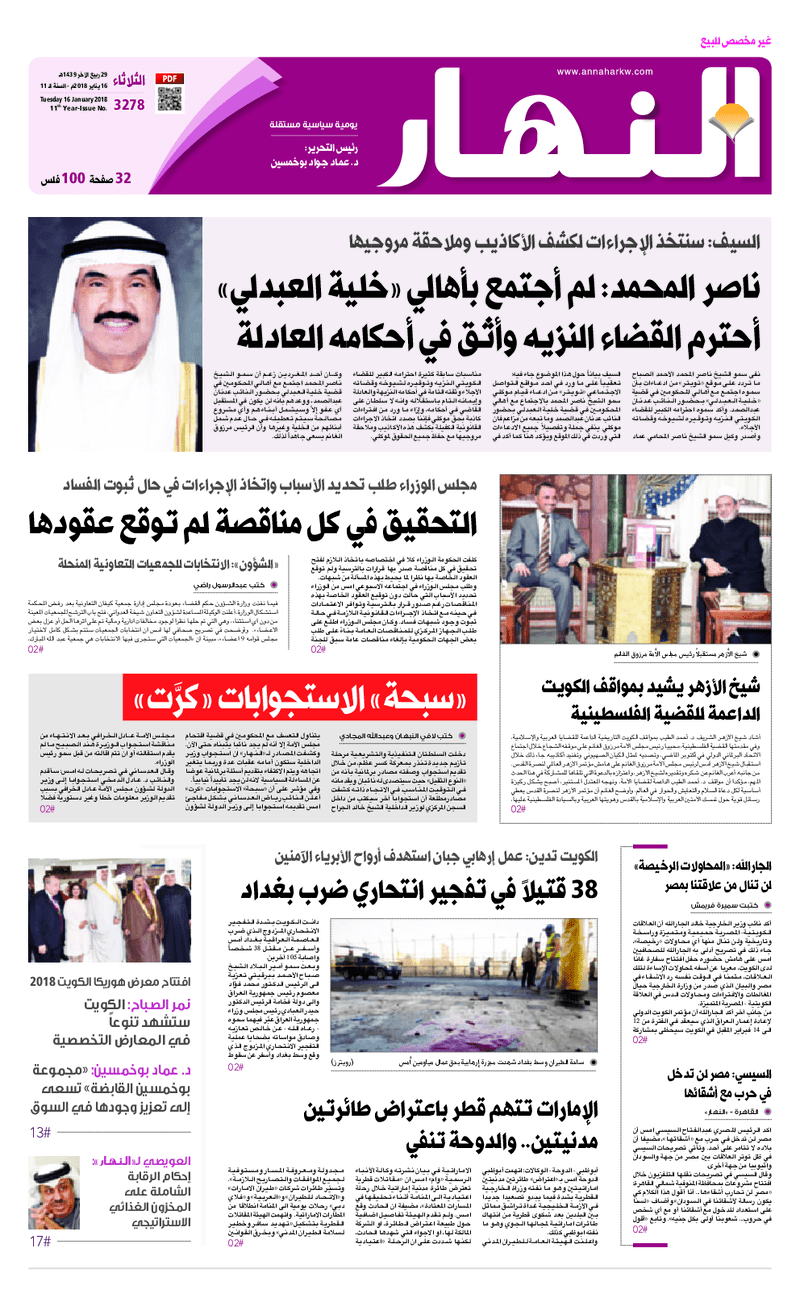 آخر الأخبار جرائم وقضايا “الجمارك” تضبط 29 ألف علبة مشروبات كحولية قادمة من دولة آسيوية في ميناء الشويخ 9 يونيو، 2024 محليات ممثلة عن دولة الكويت الطبيبة الكويتية أسماء الكندري تشارك في المؤتمر العالمي للمناظير في إيطاليا 8 يونيو، 2024 محليات “الصحة”: اكتمال وصول فريق الخدمات الطبية ببعثة الحج الكويتية لمكة المكرمة 8 يونيو، 2024 محليات “الصحة” تحدد 8 مراكز للصحة المدرسية لاستقبال الطلبة المبتعثين 8 يونيو، 2024 عربي وعالمي “الصحة العالمية”: تسجيل أول وفاة لشخص مصاب بـ«أنفلونزا الطيور» 7 يونيو، 2024 محليات عناوين الصحف الكويتية ليوم الثلاثاء 16 يناير 2018 محرر المحليات16 يناير، 2018أضف تعليق1 دقائق جريدة الجريدة جريدة السياسة جريدة النهار الوسومTop عناوين الصحف المحلية من الممكن أن يعجبك جرائم وقضايا “الجمارك” تضبط 29 ألف علبة مشروبات كحولية قادمة من دولة آسيوية في ميناء الشويخ محليات ممثلة عن دولة الكويت الطبيبة الكويتية أسماء الكندري تشارك في المؤتمر العالمي للمناظير في إيطاليا محليات “الصحة”: اكتمال وصول فريق الخدمات الطبية ببعثة الحج الكويتية لمكة المكرمة محليات “الصحة” تحدد 8 مراكز للصحة المدرسية لاستقبال الطلبة المبتعثين عربي وعالمي “الصحة العالمية”: تسجيل أول وفاة لشخص مصاب بـ«أنفلونزا الطيور» تكنولوجيا رش السحب بملح البحر.. تجربة “ثورية” لتبريد كوكب الأرض أضف تعليق أضغط هنا لإضافة تعليق إلغاء الردالتعليقالاسم البريد الإلكتروني الموقع الإلكتروني Δ هذا الموقع يستخدم خدمة أكيسميت للتقليل من البريد المزعجة. اعرف المزيد عن كيفية التعامل مع بيانات التعليقات الخاصة بك processed.