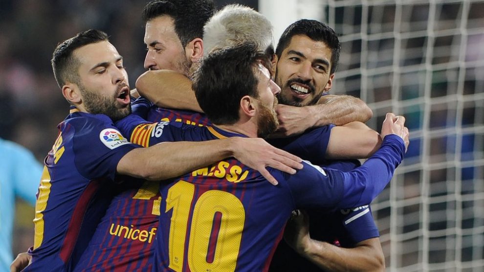 ابتعد برشلونة أكثر بصدارة دوري الدرجة الأولى الإسباني لكرة القدم بعدما أحرز ليونيل ميسي ولويس سواريز هدفين لكل منهما في الشوط الثاني في فوز ساحق 0/5 على ريال بيتيس ليتفوق بفارق 11 نقطة على أقرب منافسيه.