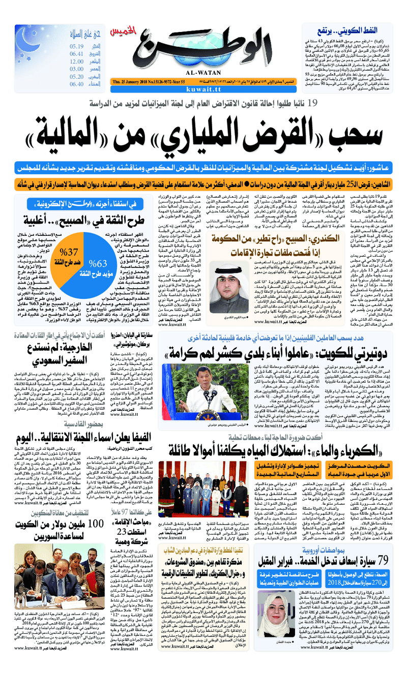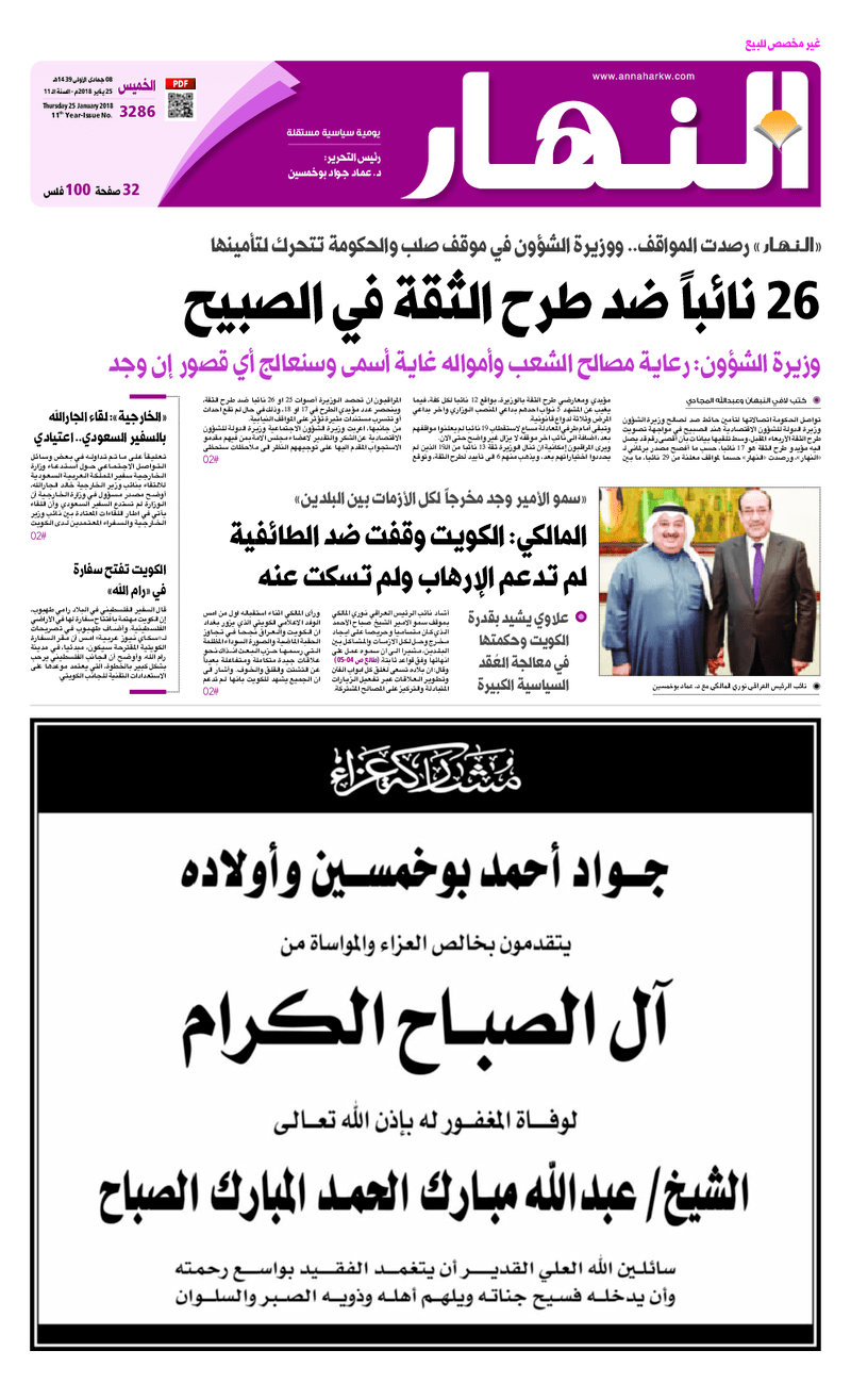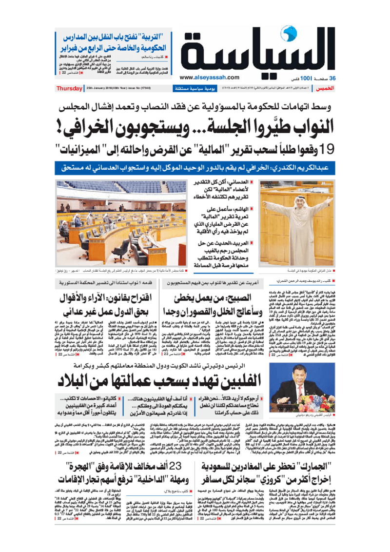 آخر الأخبار جرائم وقضايا “الجمارك” تضبط 29 ألف علبة مشروبات كحولية قادمة من دولة آسيوية في ميناء الشويخ 9 يونيو، 2024 محليات ممثلة عن دولة الكويت الطبيبة الكويتية أسماء الكندري تشارك في المؤتمر العالمي للمناظير في إيطاليا 8 يونيو، 2024 محليات “الصحة”: اكتمال وصول فريق الخدمات الطبية ببعثة الحج الكويتية لمكة المكرمة 8 يونيو، 2024 محليات “الصحة” تحدد 8 مراكز للصحة المدرسية لاستقبال الطلبة المبتعثين 8 يونيو، 2024 عربي وعالمي “الصحة العالمية”: تسجيل أول وفاة لشخص مصاب بـ«أنفلونزا الطيور» 7 يونيو، 2024 محليات عناوين الصحف الكويتية ليوم الخميس 25 يناير 2018 محرر المحليات25 يناير، 2018أضف تعليق1 دقائق جريدة الجريدة جريدة السياسة جريدة الوطن جريدة النهار الوسومTop عناوين الصحف المحلية من الممكن أن يعجبك جرائم وقضايا “الجمارك” تضبط 29 ألف علبة مشروبات كحولية قادمة من دولة آسيوية في ميناء الشويخ محليات ممثلة عن دولة الكويت الطبيبة الكويتية أسماء الكندري تشارك في المؤتمر العالمي للمناظير في إيطاليا محليات “الصحة”: اكتمال وصول فريق الخدمات الطبية ببعثة الحج الكويتية لمكة المكرمة محليات “الصحة” تحدد 8 مراكز للصحة المدرسية لاستقبال الطلبة المبتعثين عربي وعالمي “الصحة العالمية”: تسجيل أول وفاة لشخص مصاب بـ«أنفلونزا الطيور» تكنولوجيا رش السحب بملح البحر.. تجربة “ثورية” لتبريد كوكب الأرض أضف تعليق أضغط هنا لإضافة تعليق إلغاء الردالتعليقالاسم البريد الإلكتروني الموقع الإلكتروني Δ هذا الموقع يستخدم خدمة أكيسميت للتقليل من البريد المزعجة. اعرف المزيد عن كيفية التعامل مع بيانات التعليقات الخاصة بك processed.